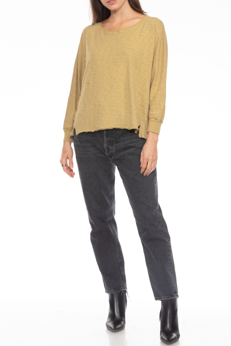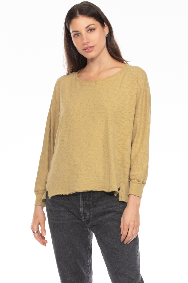 Add a touch of vintage charm to your wardrobe with the Dani Dolman Top in soft Willow green. Crafted from 100% cotton, this relaxed-fit tee feels as comfortable as it looks. The playful dolman sleeves add a stylish twist, making it perfect for casual days with effortless flair.