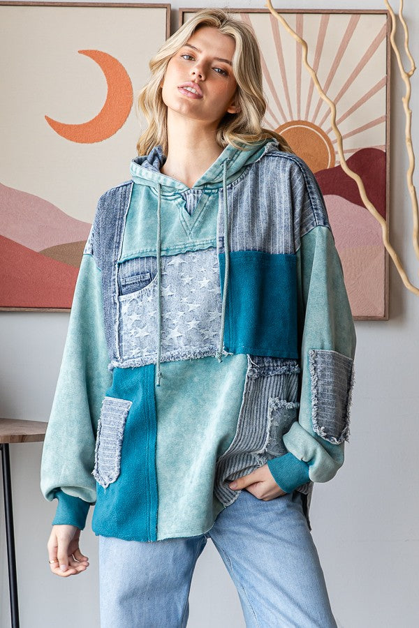 Embrace casual cool with this Washed Patchwork Denim Hooded Pullover Top. Featuring a relaxed fit and true-to-size design, it’s perfect for effortless layering and all-day comfort. The mineral wash detail adds a unique, lived-in vibe that makes every wear feel like your favorite go-to.