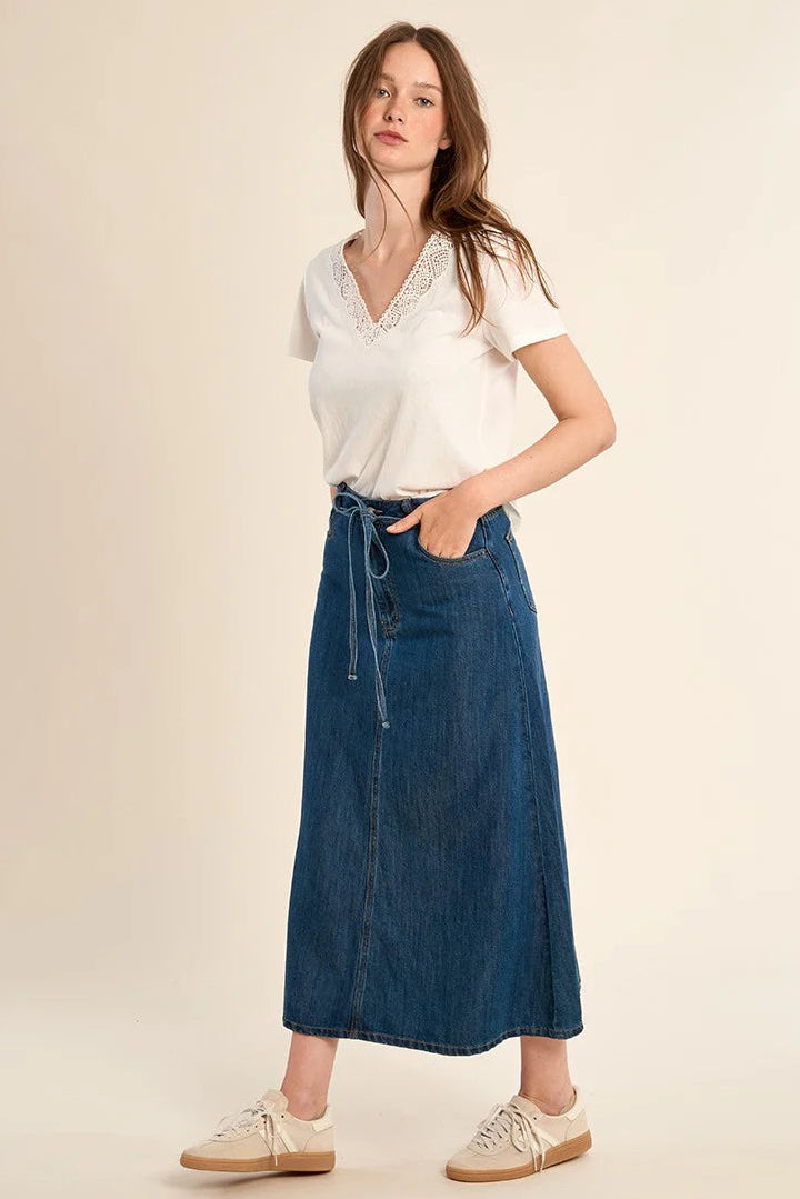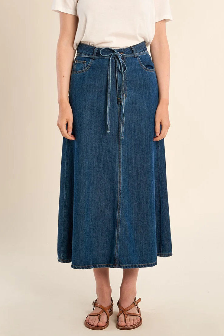 Jessica Knotted Tie Waist Denim Skirt – Classic Blue