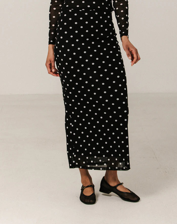Mesh Maxi Tube Skirt – Black with Cream Polka Dots