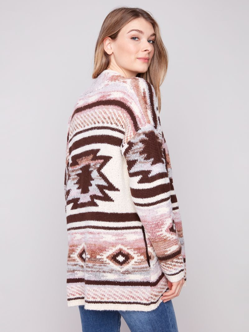 Wrap yourself in warmth and artistry with the Jacquard Cardigan in Rosewood, featuring bold Aztec-inspired patterns and cozy patch pockets. This cardigan brings a bohemian touch to your wardrobe with its unique, textured jacquard knit, offering just the right mix of comfort and style. The rich, earthy rosewood color pairs effortlessly with everything, while the statement Aztec print adds a playful, graphic flair.