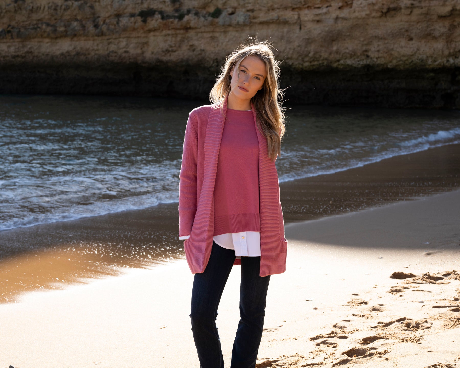 Wrap yourself in cozy charm with this Long Sleeve Cardigan in a cheerful light coral hue. Featuring roomy large pockets, it’s perfect for stashing your essentials or warming your hands on a breezy day. The soft fabric and relaxed fit make it your go-to layer for playful days and casual adventures. Brighten up your wardrobe with this fun and functional cardigan!