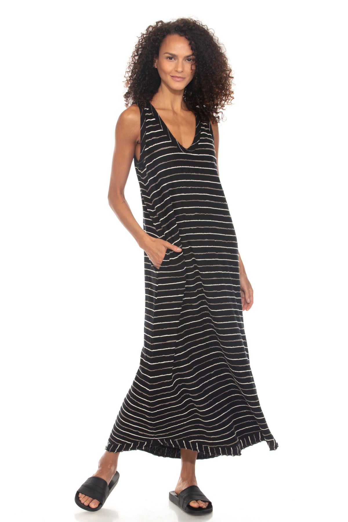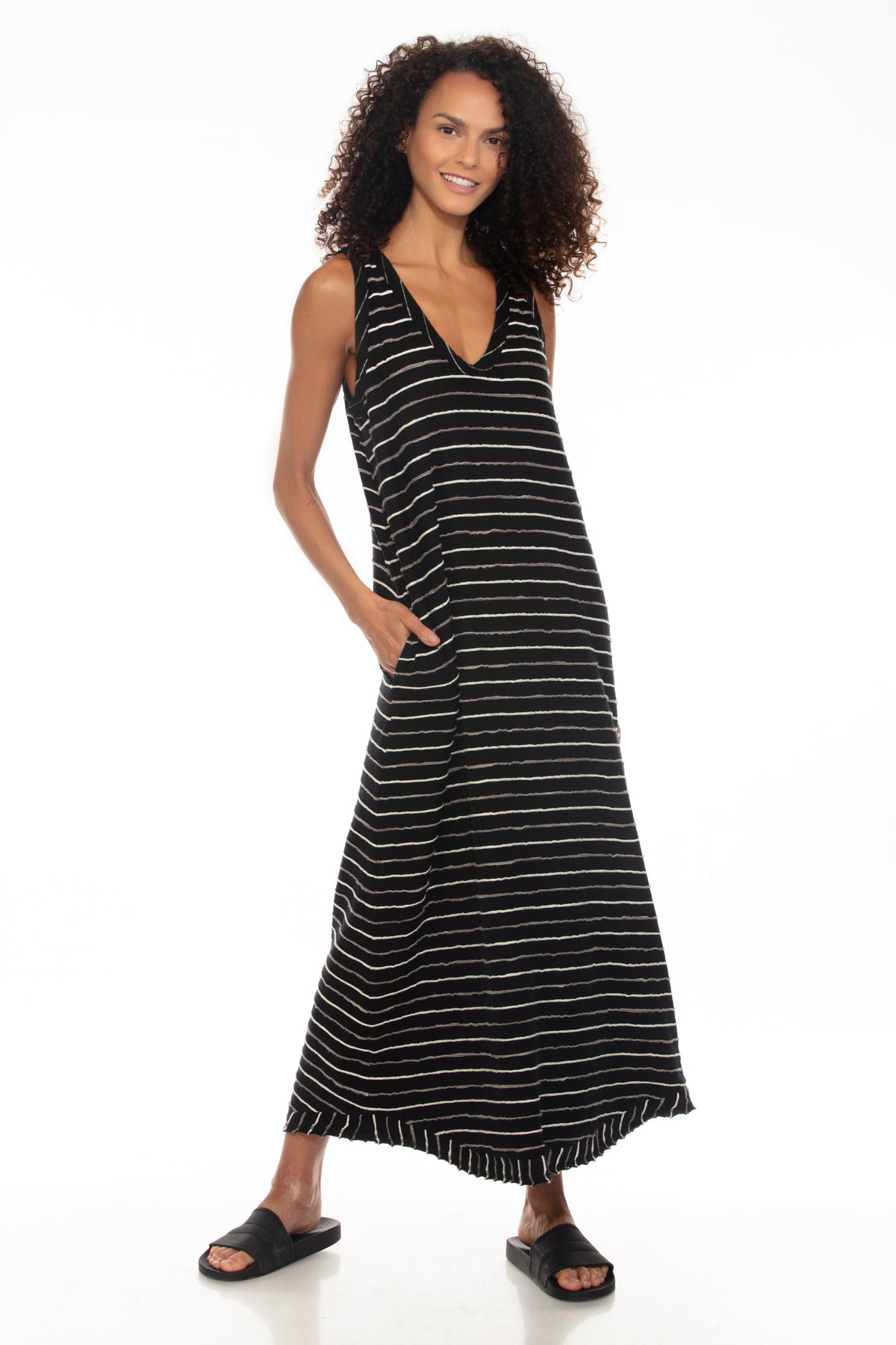 Summer Night Knit Bree Striped Maxi Dress - Black