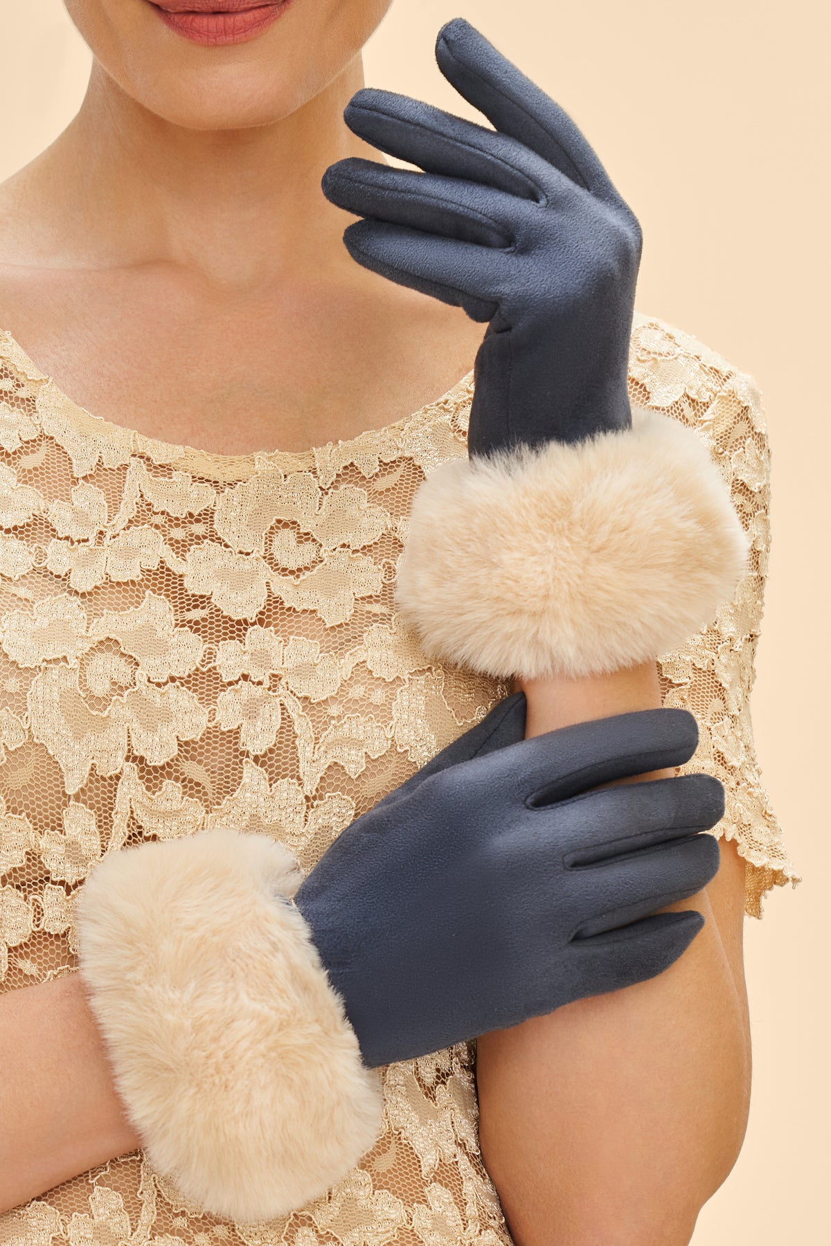 Step out in style with the Bennita Faux Suede Gloves in chic Navy and Cream! Soft to the touch and cozy on your hands, these gloves add a playful pop of color to any outfit while keeping you warm. Perfect for crisp days when you want comfort without sacrificing flair. Your new go-to accessory for a fun and fashionable winter!
