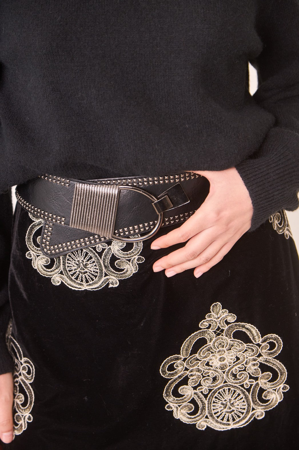 This isn’t just a belt—it’s the finishing touch your outfit’s been waiting for. The asymmetrical design and bold studded detailing bring that just-right edge, while the open ring-and-pin closure makes it feel refreshingly different from the everyday. With an elasticated trim that moves with you, it’s as comfortable as it is striking. Toss it over a flowy dress, cinch it around a tunic, or style it with high-waist pants—this belt instantly turns any look into a statement.