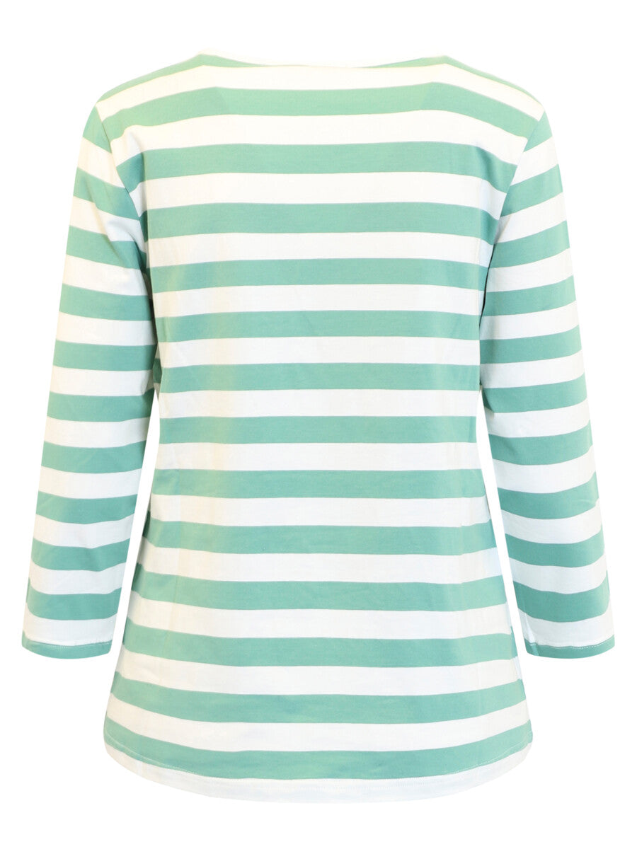 3/4 Sleeve Striped Top - Green/White