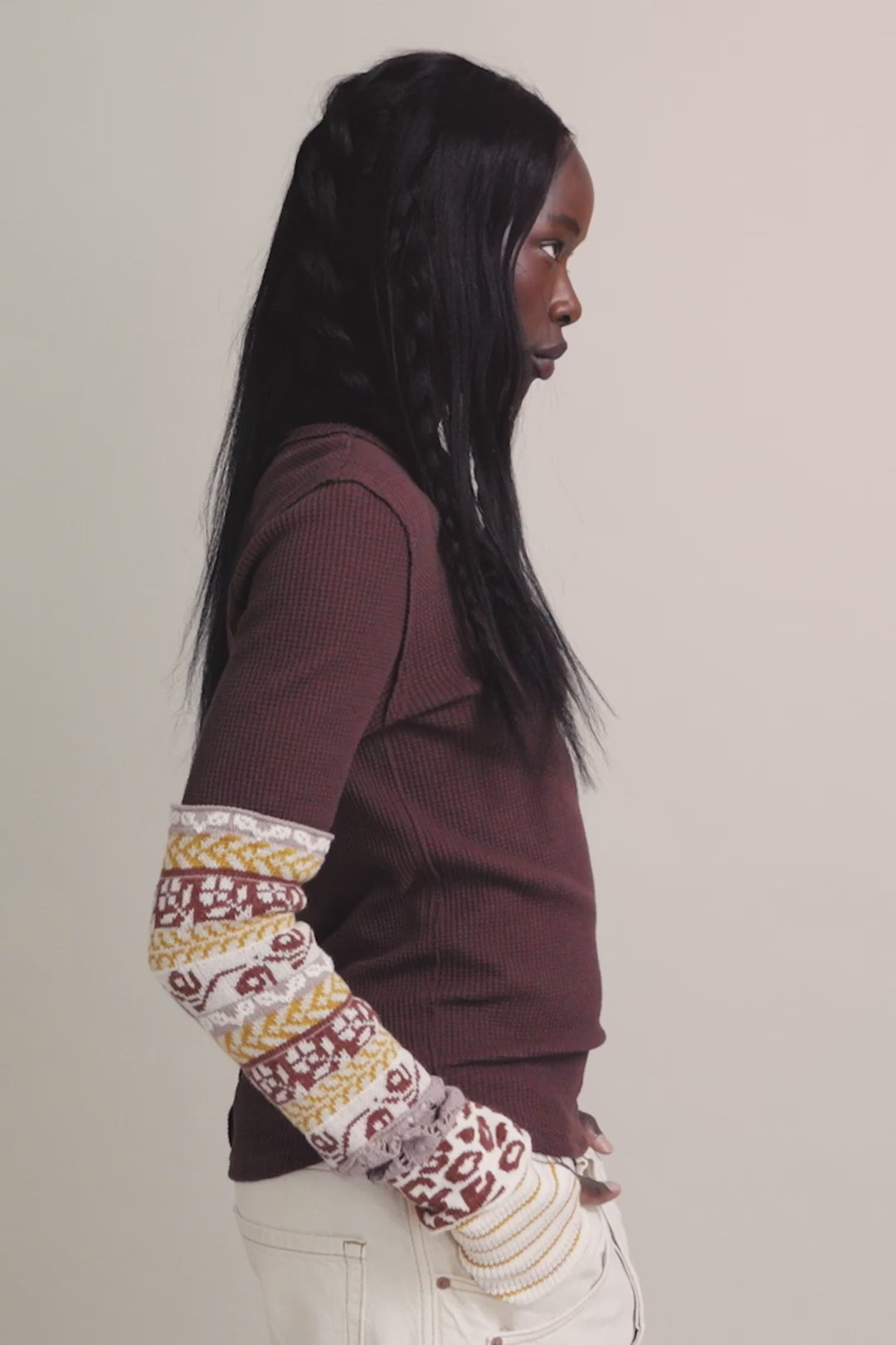 Cuffing season is finally here. This top from our Free People collection features a relaxed fit and long-sleeve style with exaggerated printed cuffs and thumbhole detailing.