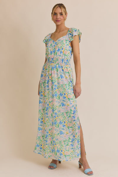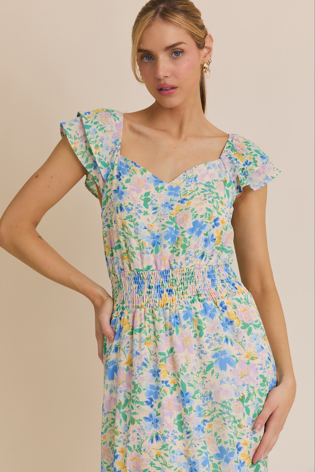 Cue the compliments—this dress is pure sunshine. With a charming sweetheart neckline and cheerful floral print on a soft ivory backdrop, the Lesley Dress is made for twirling, strolling, and brightening up your day.