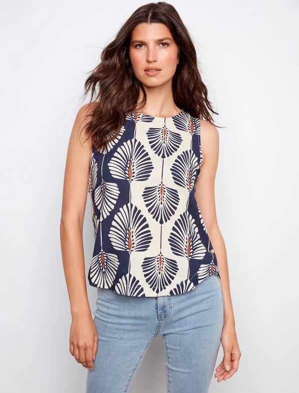 Escape to island vibes with this breezy sleeveless blouse featuring a vibrant Tahiti print that brings tropical flair to any outfit. The rounded hem adds a playful, modern twist that flatters your silhouette while keeping things light and airy. Perfect for warm weather adventures, casual getaways, or whenever you want to channel that carefree island spirit. Pair it with your favorite shorts, linen pants, or a flowing skirt for effortless summer style.