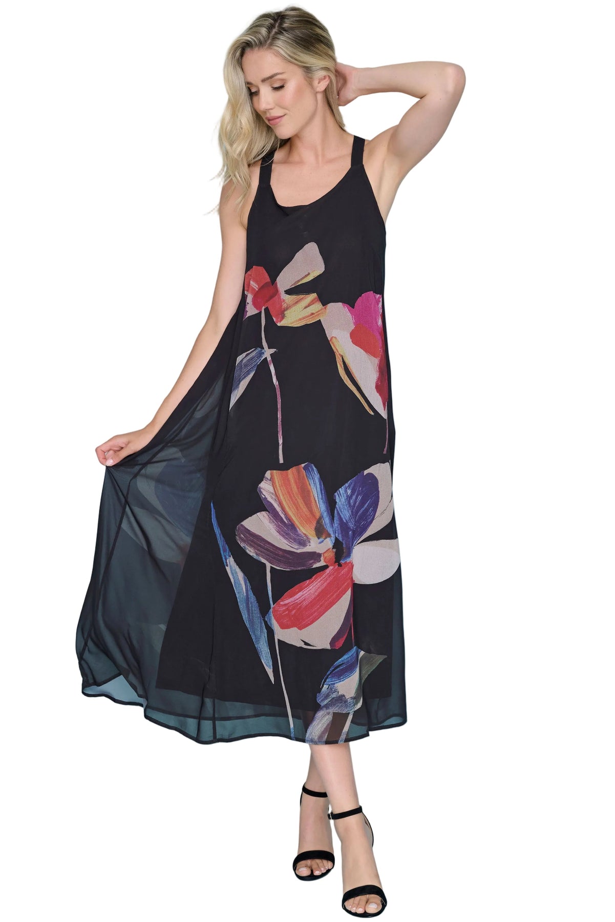 Flowy, fun, and made to turn heads! This black sleeveless maxi dress features colorful floral designs that pop, while the dramatic flare adds movement and dimension with every step. The flowing silhouette skims the body gracefully, perfect for warm-weather days, weddings, or special occasions. Black multi tones pair effortlessly with your favorite accessories, taking you from daytime celebrations to evening events in style. Stay cool, comfy, and effortlessly chic!