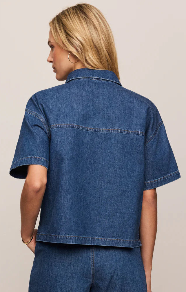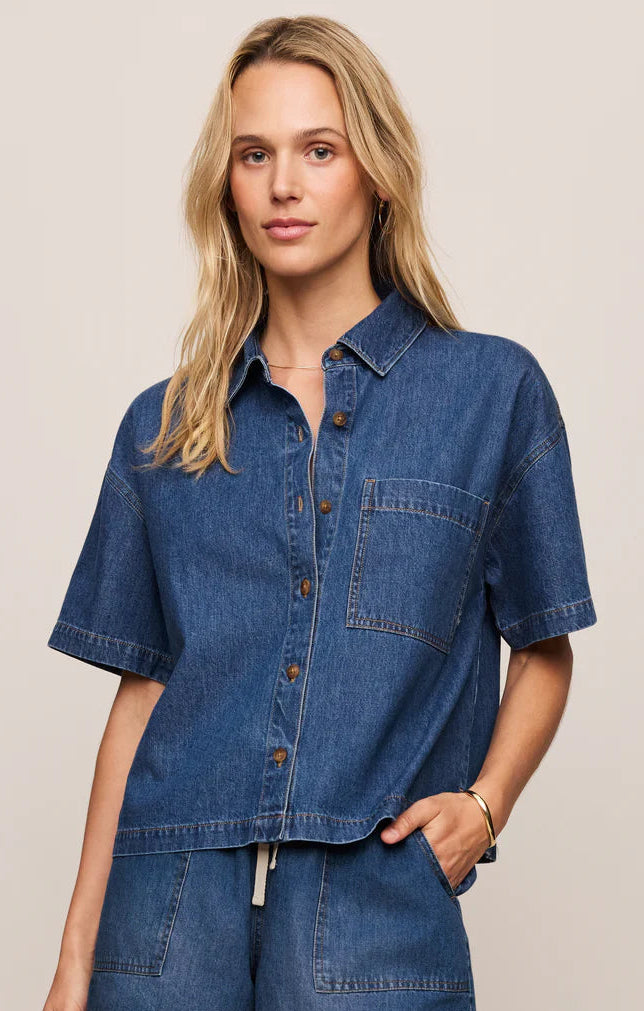Made of 100% cotton, this button up top features ultra soft denim with a lightweight feel. Layer over a simple tank and pair it with its matching shorts or pants for an easy but stylish look.