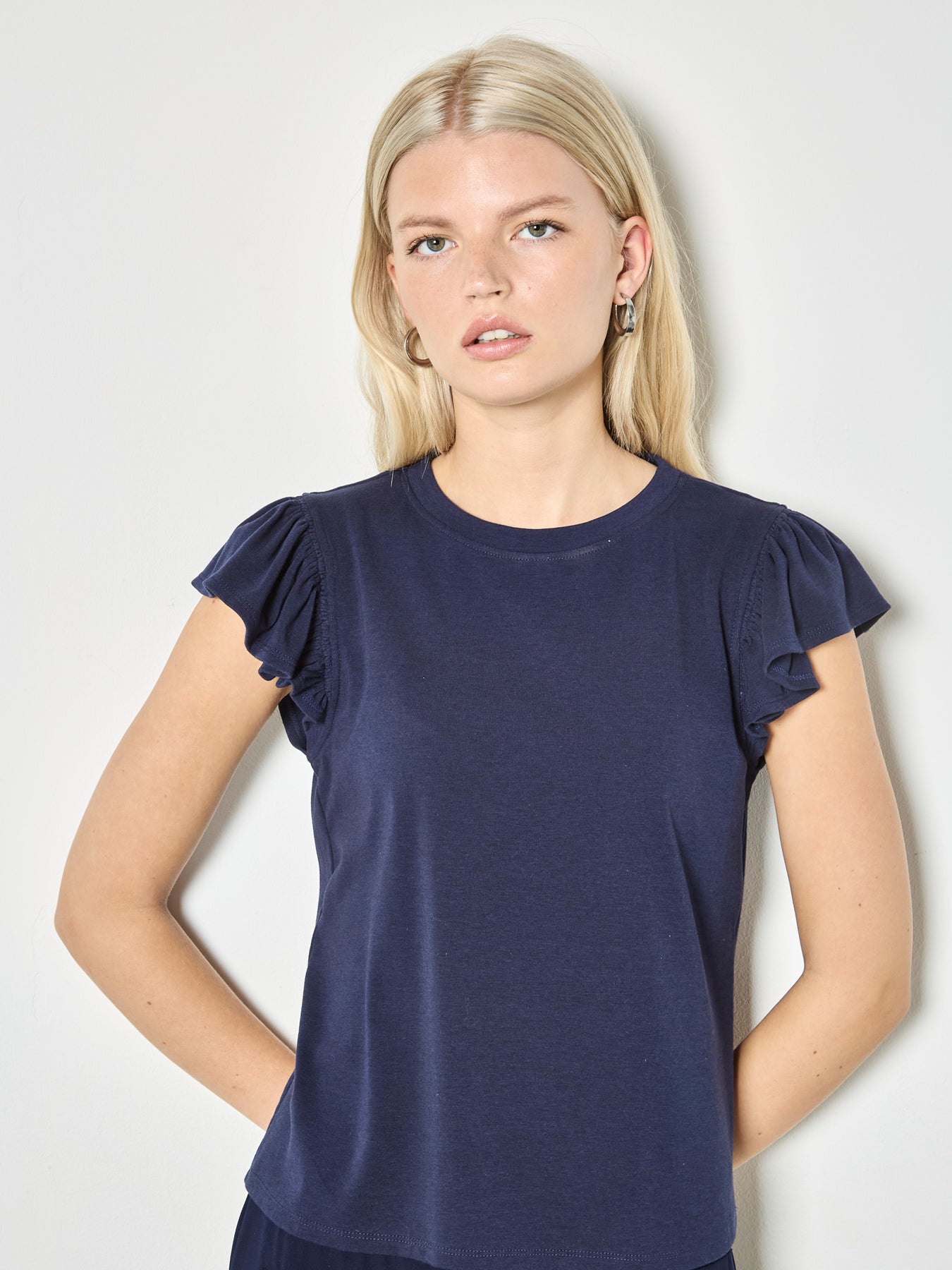 Fine Rib Ruffle Tee - Navy