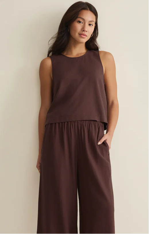 Sloane Linen Cropped Tank - Chocolate Cherry