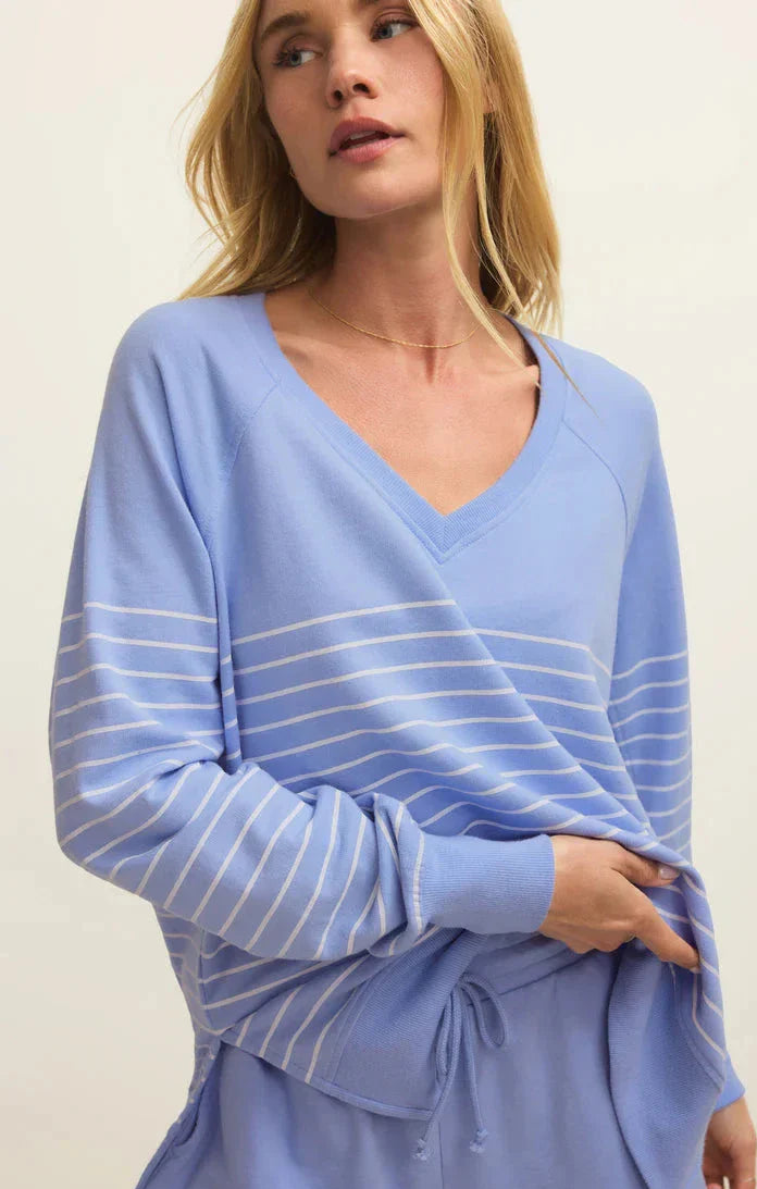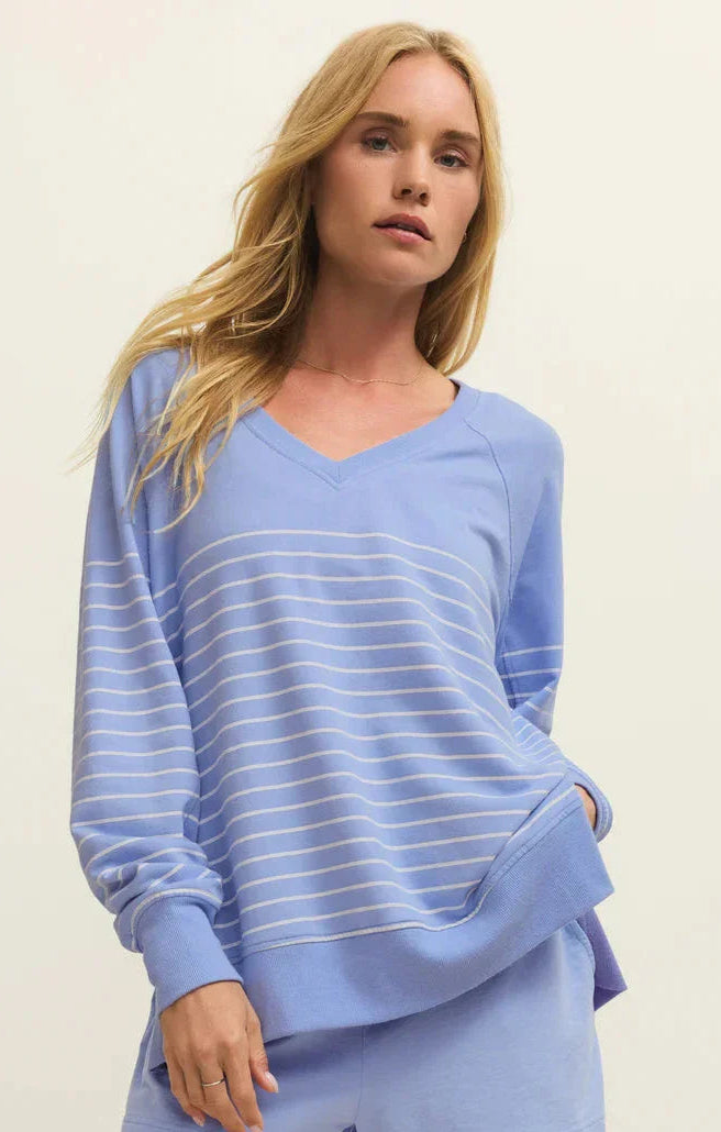 There’s something about this Weekender Stripe V-Neck that just makes you want to live in it. Soft, buttery baby French terry feels like a hug from your favorite person, while the relaxed fit gives just the right amount of ease for mornings at home, coffee runs, or casual meet-ups with friends. The timeless v-neck keeps it effortlessly stylish, and those cheerful stripes add a touch of personality that makes every outfit feel brighter. Cozy, playful, and impossible not to love—it’s the kind of sweatshirt you’ll reach for again and again.
