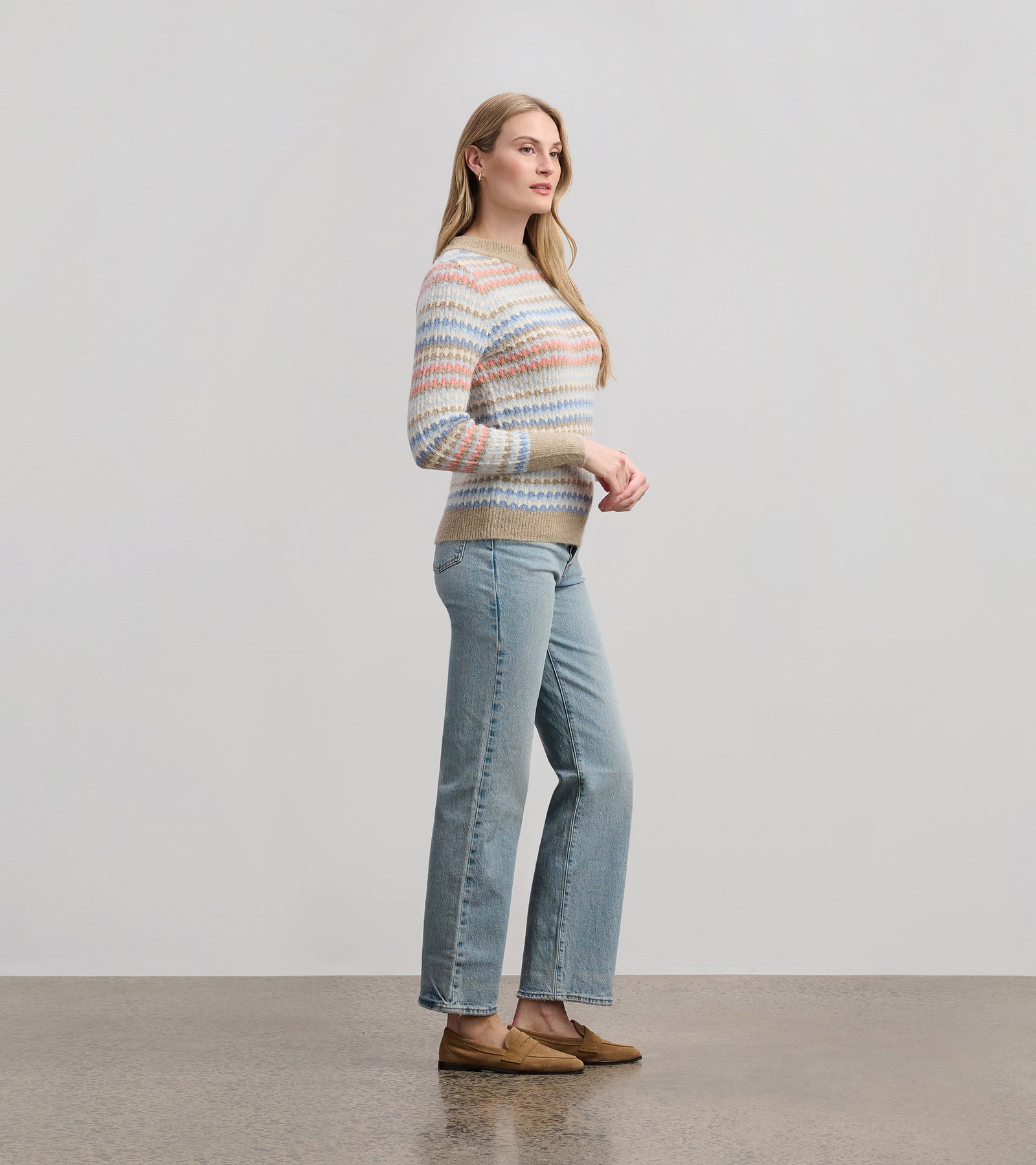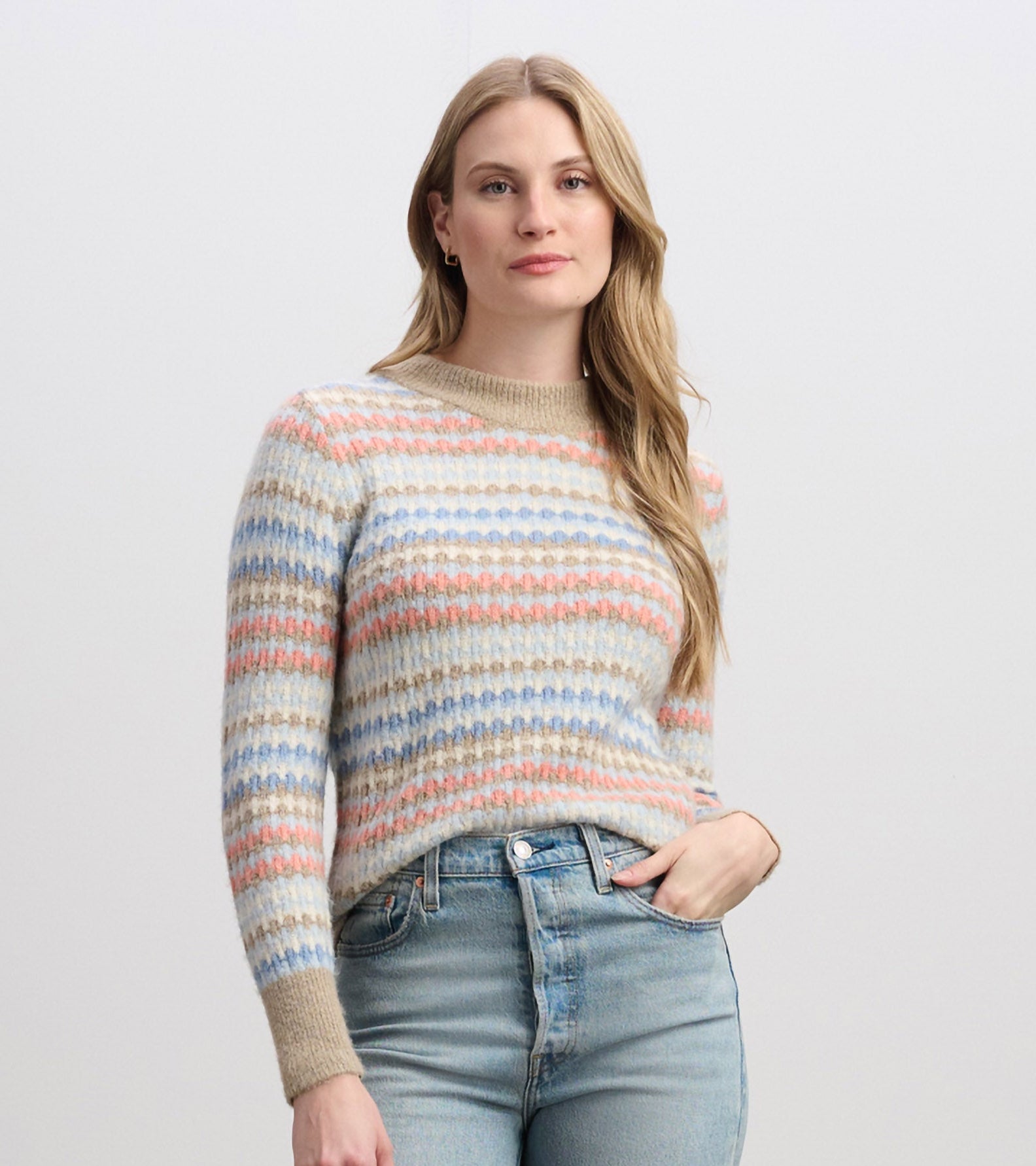 The Everywhere Sweater in Bubble Stripes adds a fun twist to your wardrobe with its bold striped pattern and cozy mock neck. Lightweight yet snug, its ribbed trims bring extra charm to this versatile knit. Perfect for pairing with jeans, leggings, or skirts, it’s your go-to for playful days out or relaxed evenings in style.