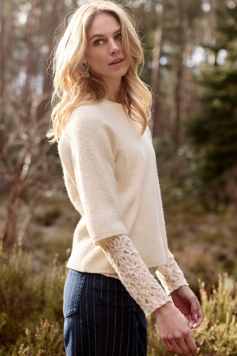 Step into cozy elegance with this 3/4 Sleeve Crew Neck Sweater in creamy delight. Its soft fabric and relaxed fit promise comfort with every move, while the playful sleeve length adds a touch of charm to your everyday look. Perfect for layering or wearing solo, this sweater brings warmth and style in one creamy package.