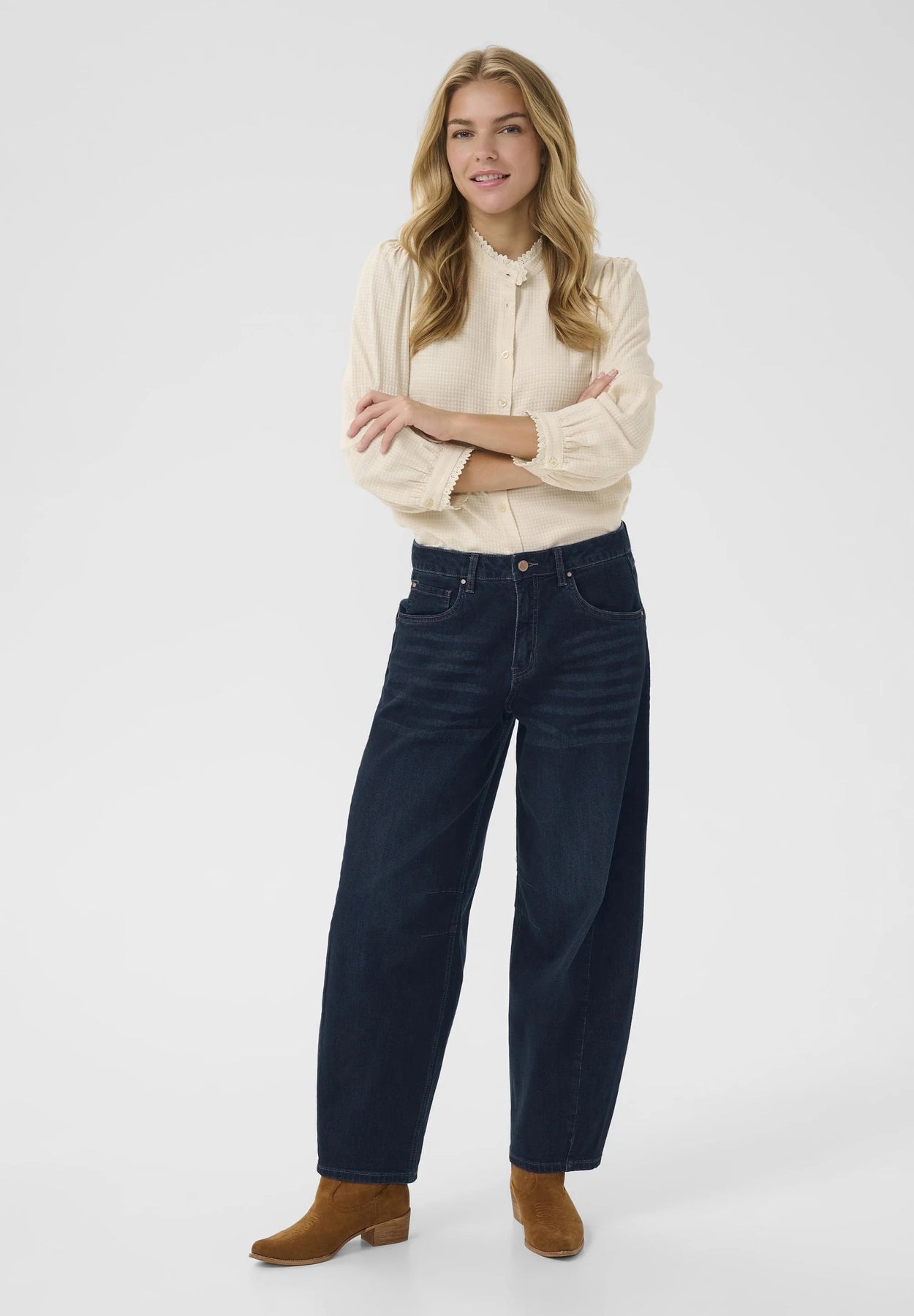 Your new everyday favorite! The Bahren Jeans in Garland Dark Blue feature a high-waisted fit that flatters your silhouette while giving all-day comfort. The relaxed ankle-length cut makes them perfect for showing off boots, sneakers, or sandals, and the classic dark wash keeps them versatile for any outfit.