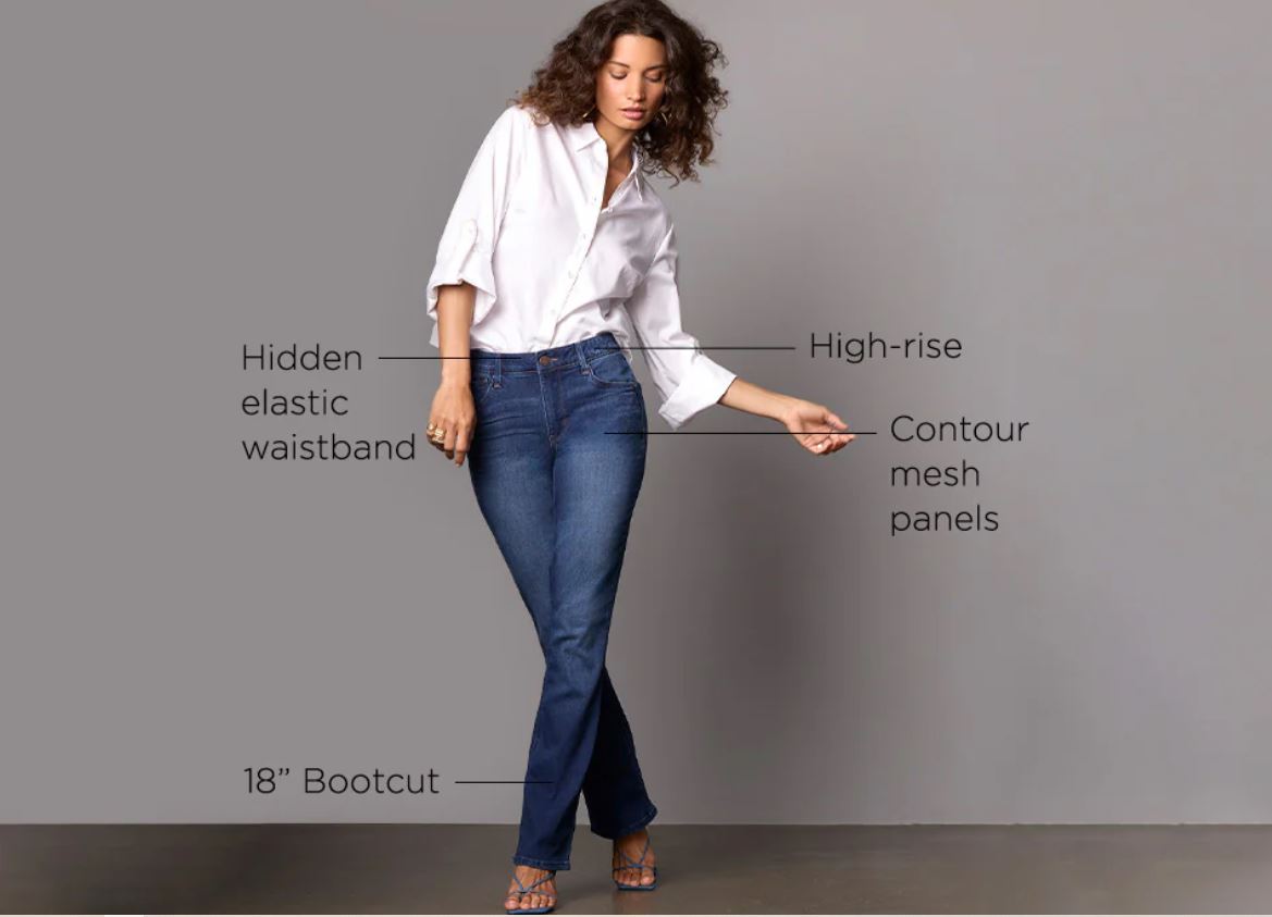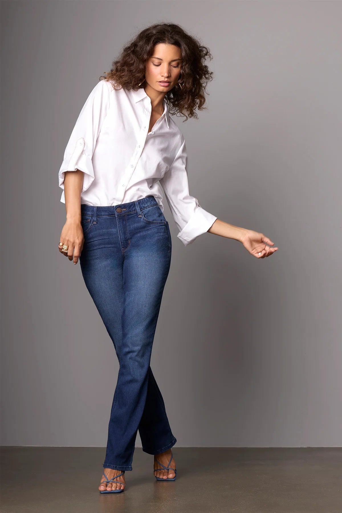 The blue Brittany Itty Bitty Boot is fitted from the hips to calves with a "legs-for-days" baby bootcut leg opening. They’re made with Contour Shape Technology for a tailor-made, flawless fit and thoughtful design details