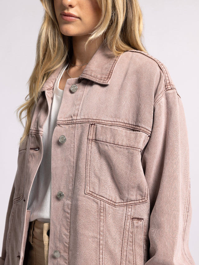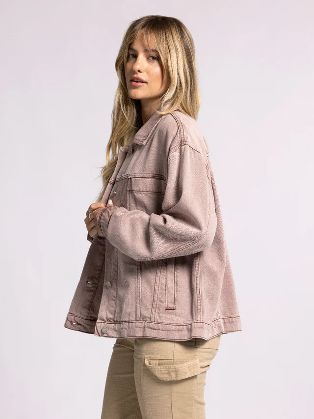 Meet the Cordell Jean Jacket in Clove — your go-to for relaxed, effortless cool. The dropped shoulders create a trendy, laid-back silhouette, while the contrast stitching adds a playful, stylish touch. With dual patch and side pockets plus a classic button-front closure, this jacket is as practical as it is chic.