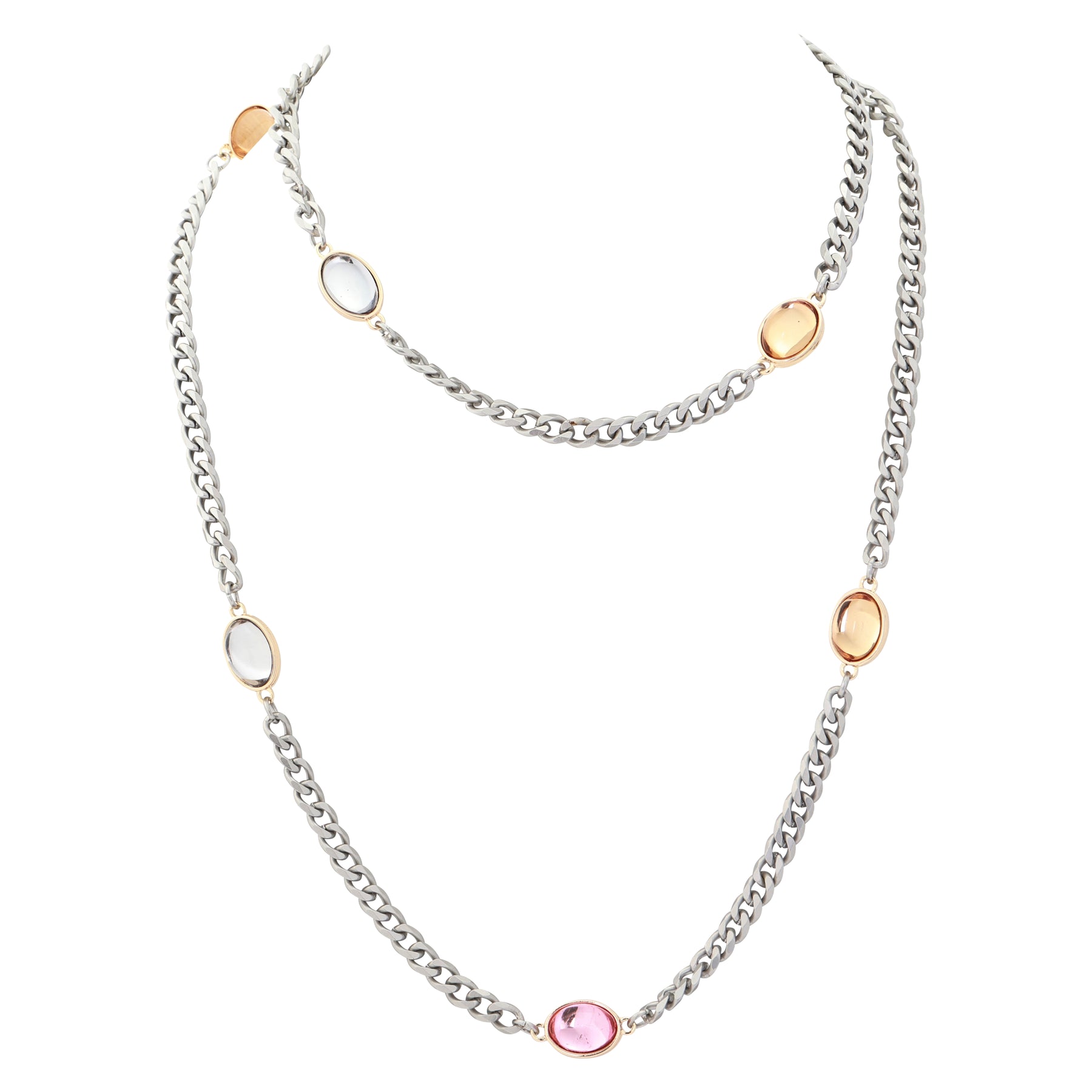Add a modern touch to any outfit with this long chain necklace featuring playful circle designs throughout. Perfect for layering or wearing solo, it brings movement and interest to both casual and dressy looks.