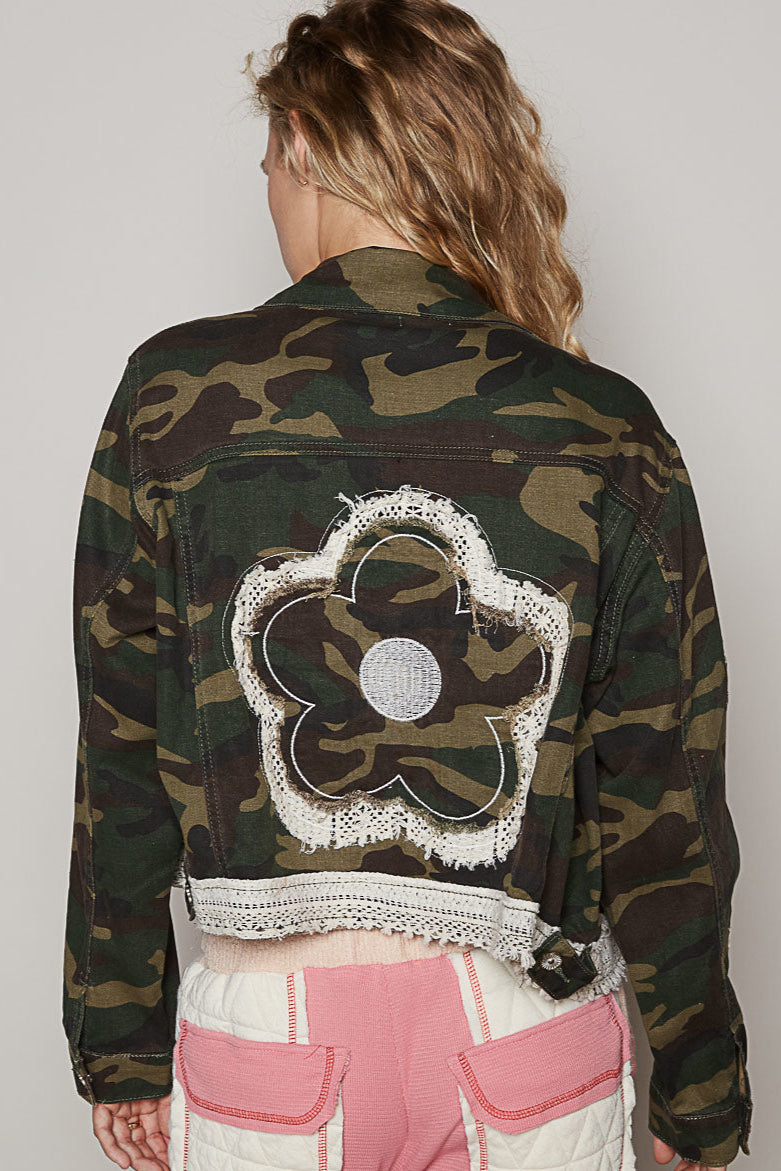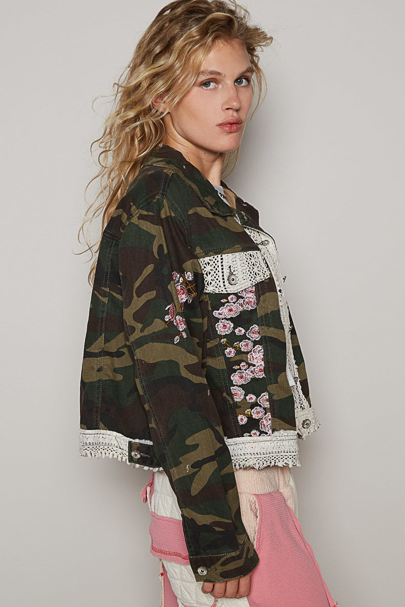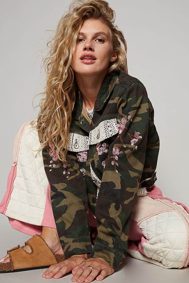 This floral and lace camo jacket is a true standout. With a collar neck and long sleeves, its regular fit makes it perfect for layering over your favorite tops. The printed twill fabric is brought to life with delicate embroidery, charming crochet and flower patches, and a cool vintage wash that gives it character and personality. Whether you’re out for a weekend adventure or adding flair to everyday outfits, this jacket turns even simple looks into something special you’ll love wearing.