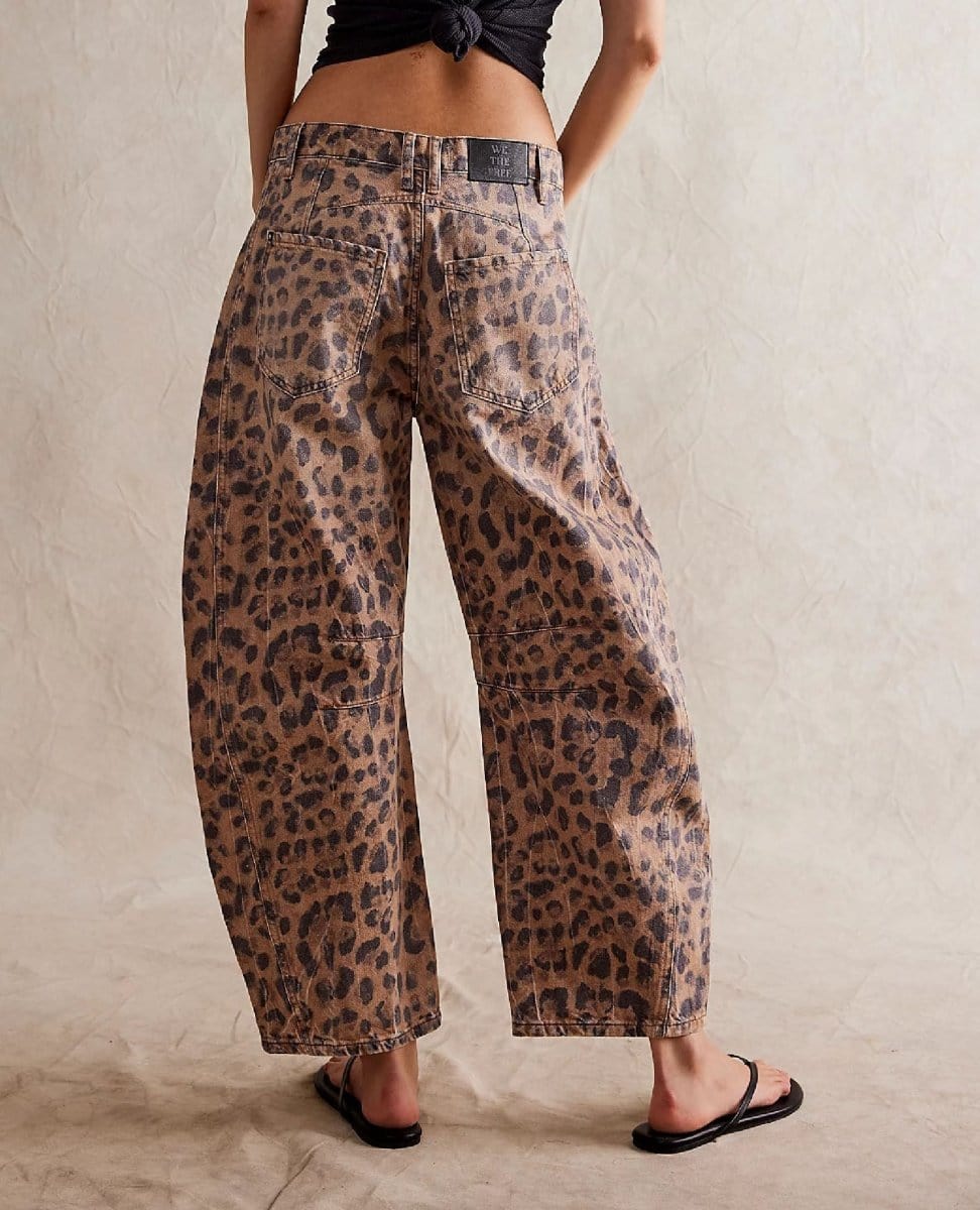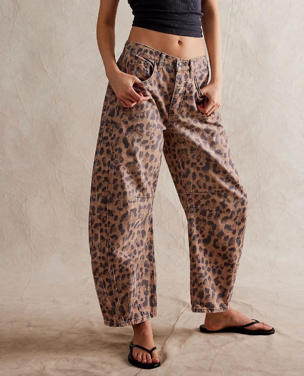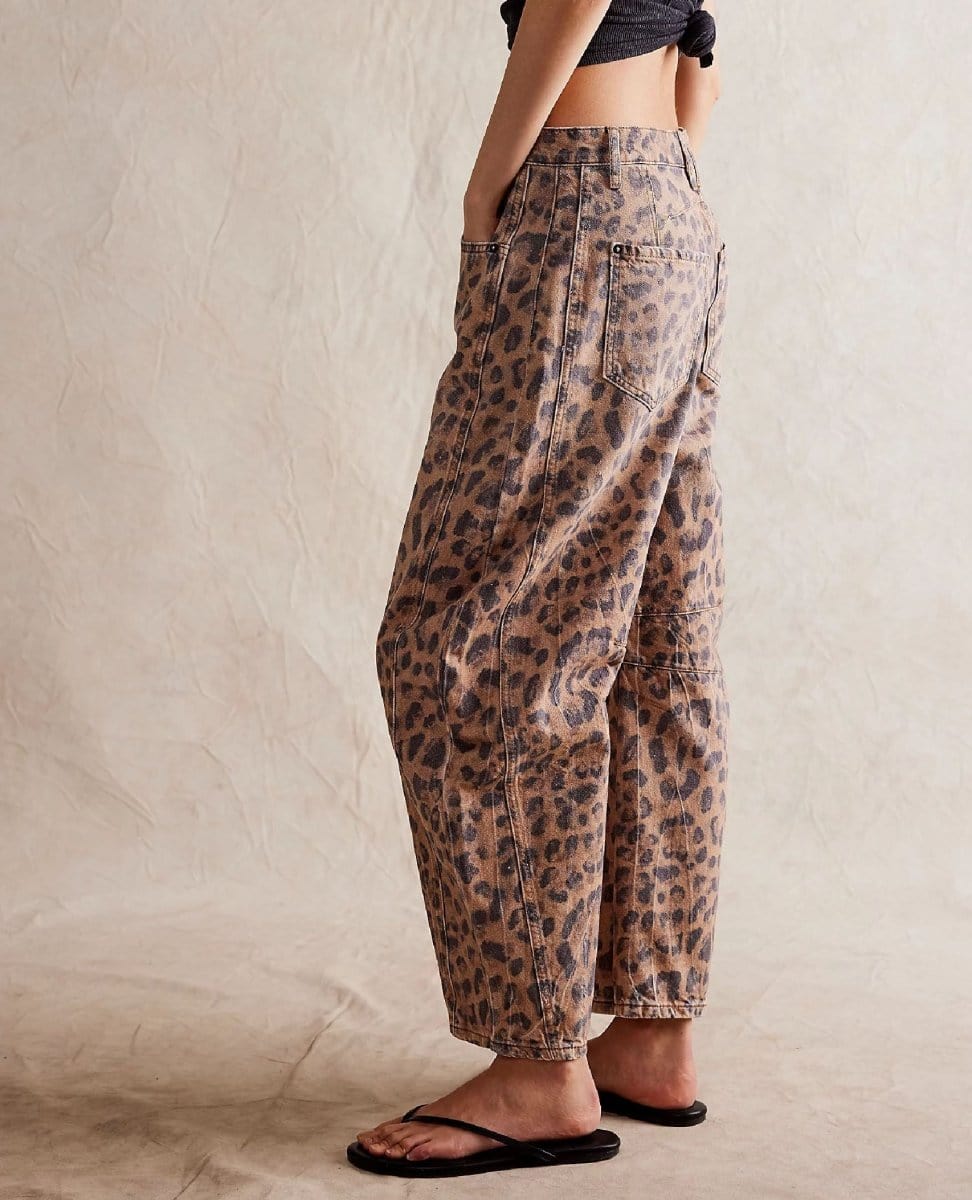 Our most-loved barrel jeans from our Free People collection, now featured in a playful printed fabrication.