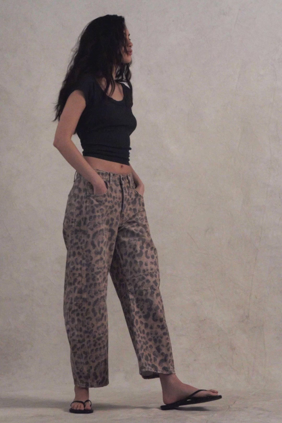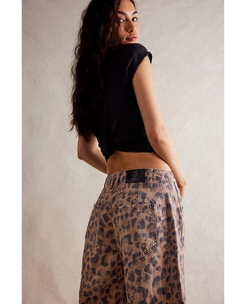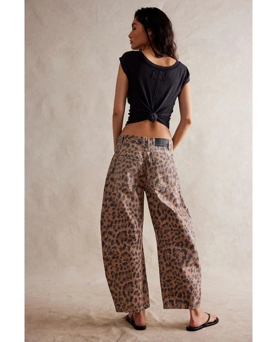 Our most-loved barrel jeans from our Free People collection, now featured in a playful printed fabrication.
