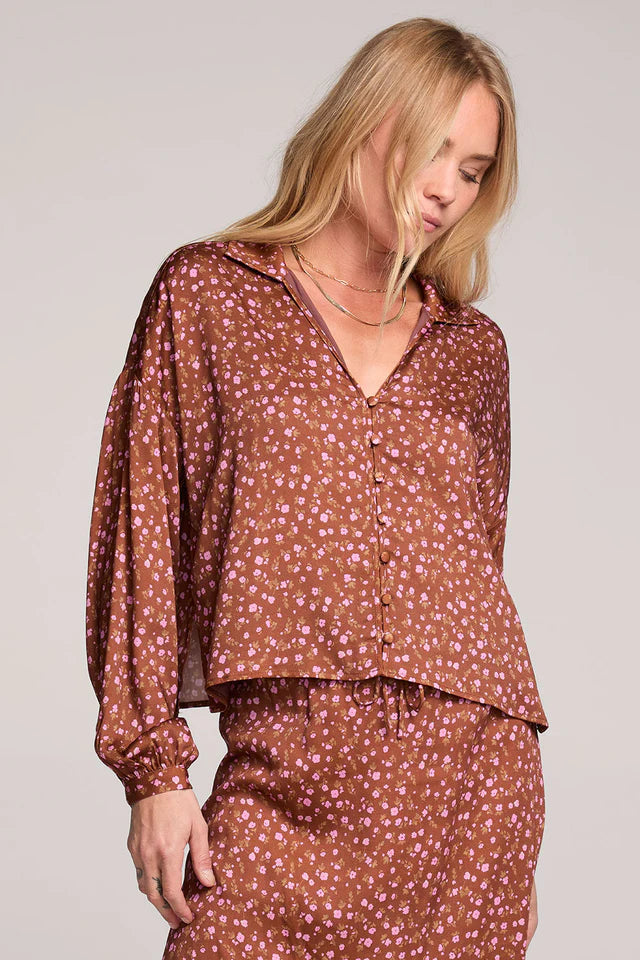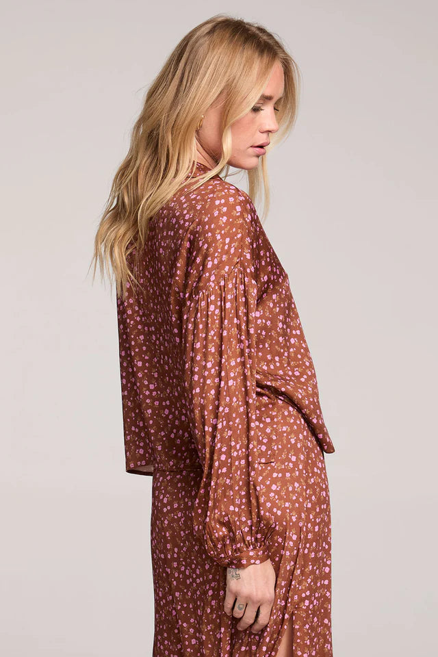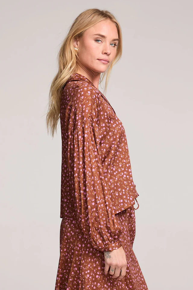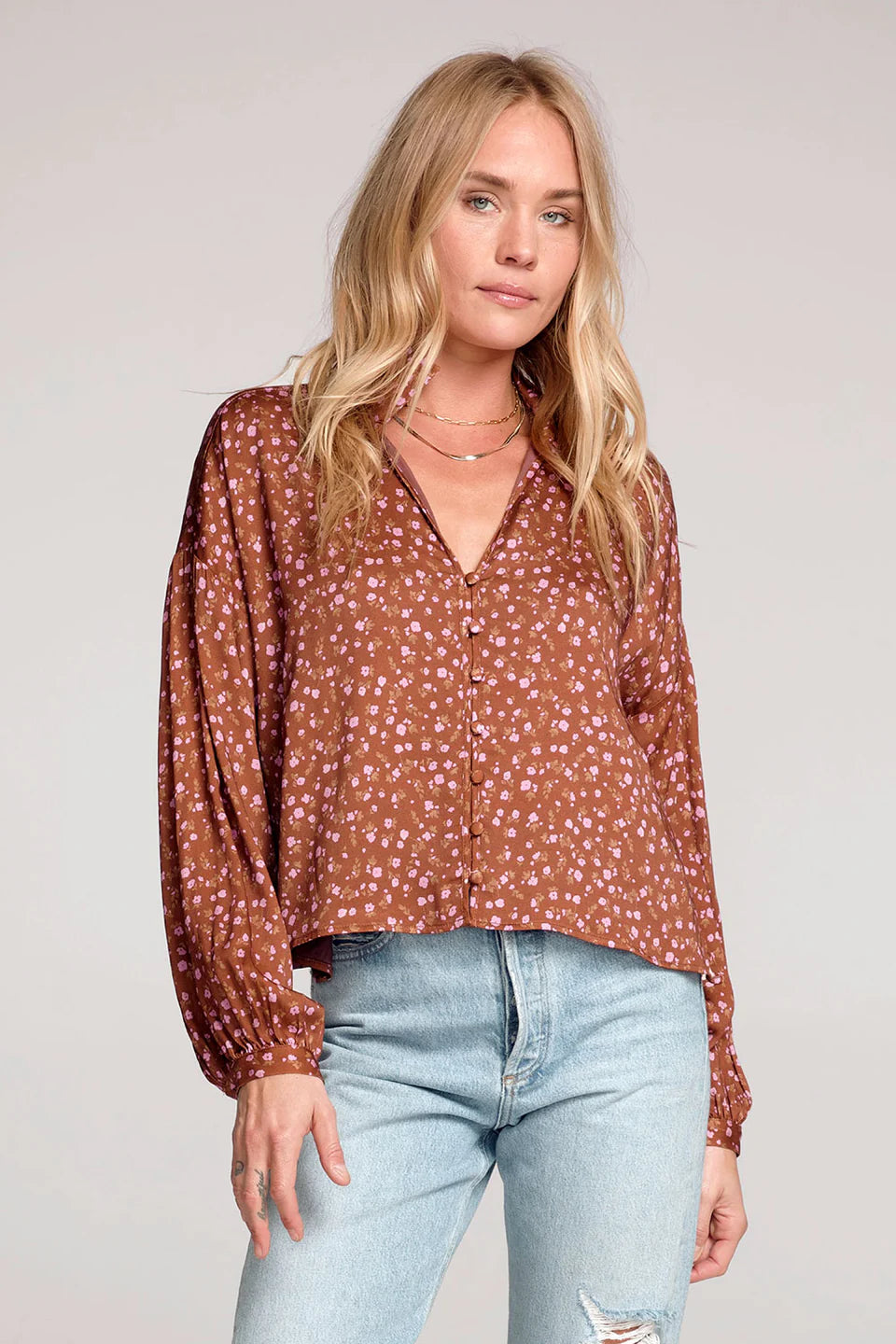 The Kaylie Top in Mocha offers a breezy, flattering fit that dances from your shoulders with ease. Its subtle V neckline adds a hint of charm, while the front button line brings just the right touch of sophistication. Finished with tailored sleeves, this top combines playful style with polished flair for effortless days and nights.