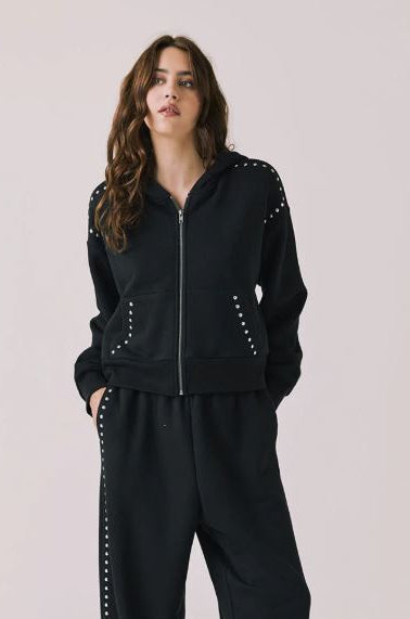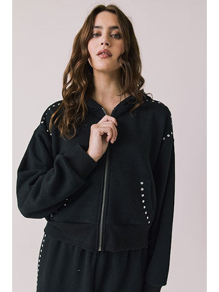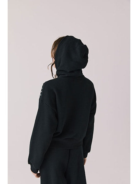 Rock a vibe that's equal parts cozy and cool with the Kiki Black Zip Up Hoodie. This boxy cropped silhouette hits just right, featuring a full front zip, practical pockets, and eye-catching black and white detailing at the shoulders and pockets. Perfect for layering or wearing solo, it's the effortless piece your wardrobe's been waiting for.