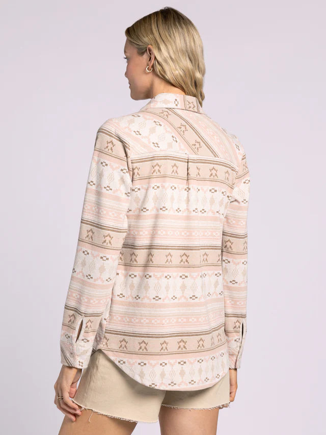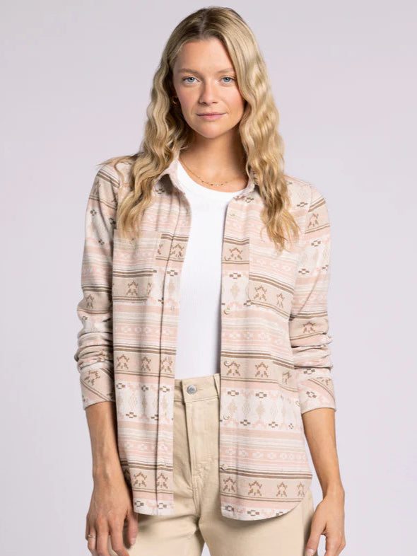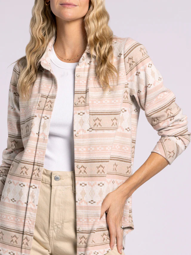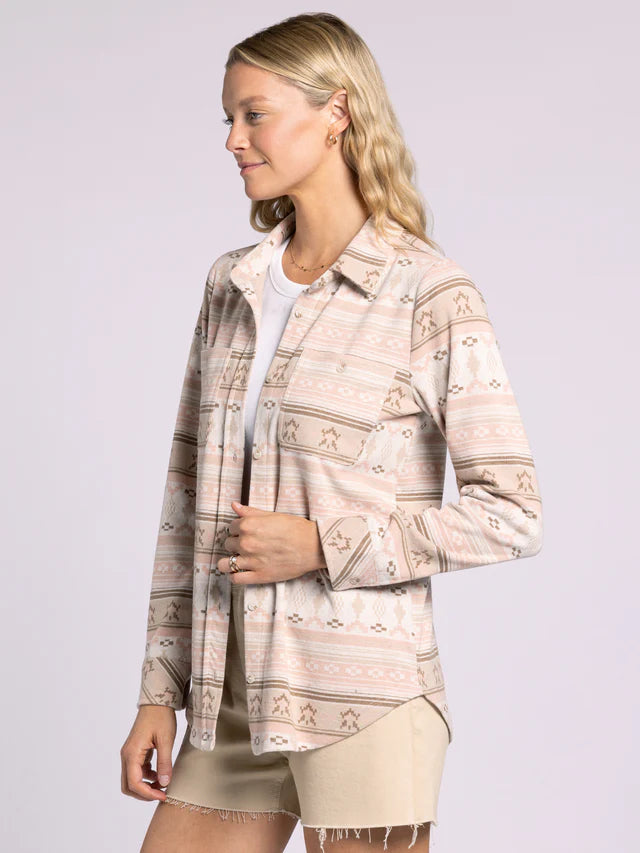Meet your new wardrobe favorite — the Lewis Shirt in Rose Aztec. With its buttery-soft fabric and relaxed fit, this shirt was made for easy days and effortless style. The classic collared neckline, button-front closure, and dual chest pockets give it that timeless feel, while the playful Aztec-inspired print in soft rose tones keeps it fresh and fun. Wear it buttoned up for a put-together vibe or layer it over your favorite tee for that perfectly casual look.