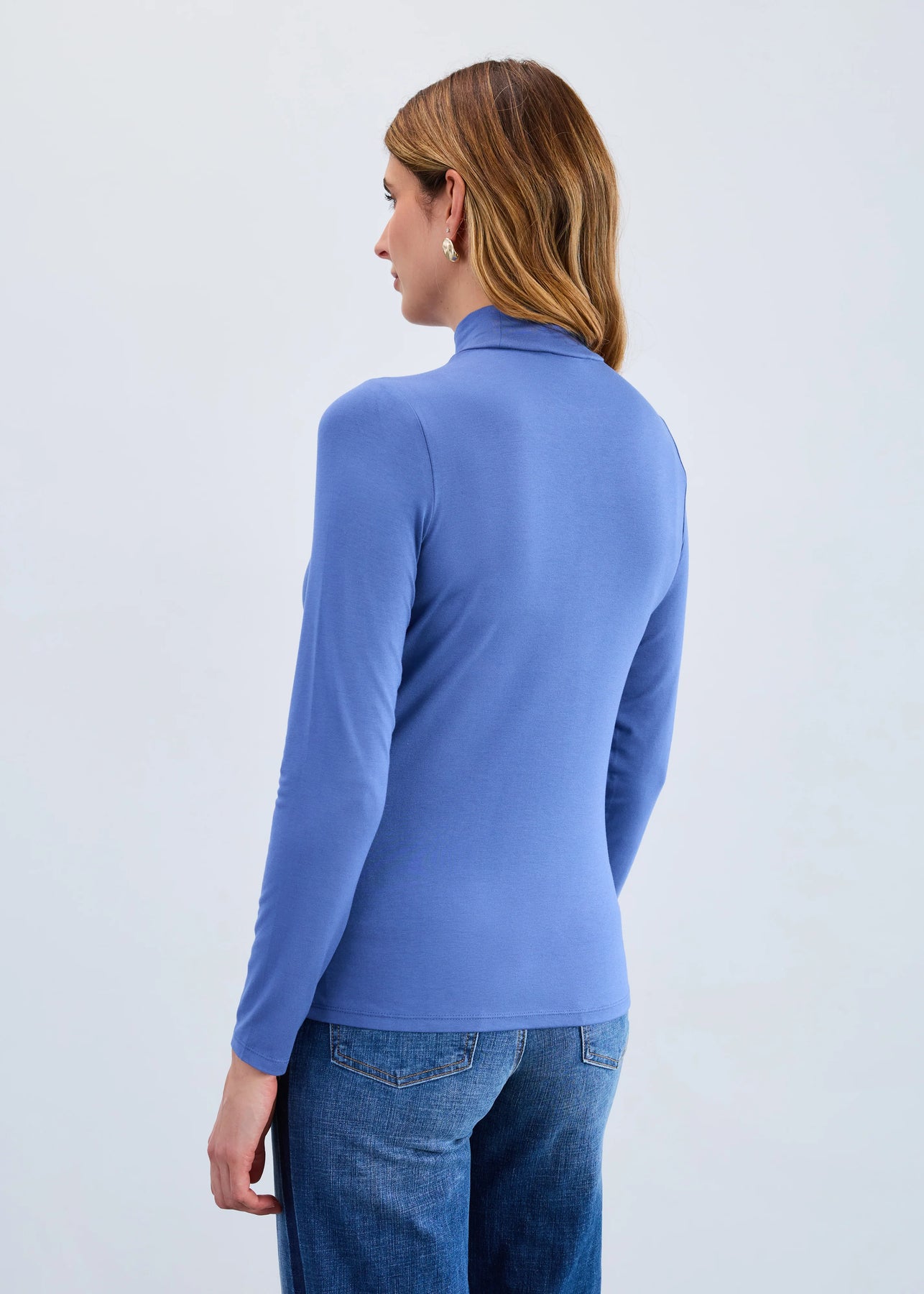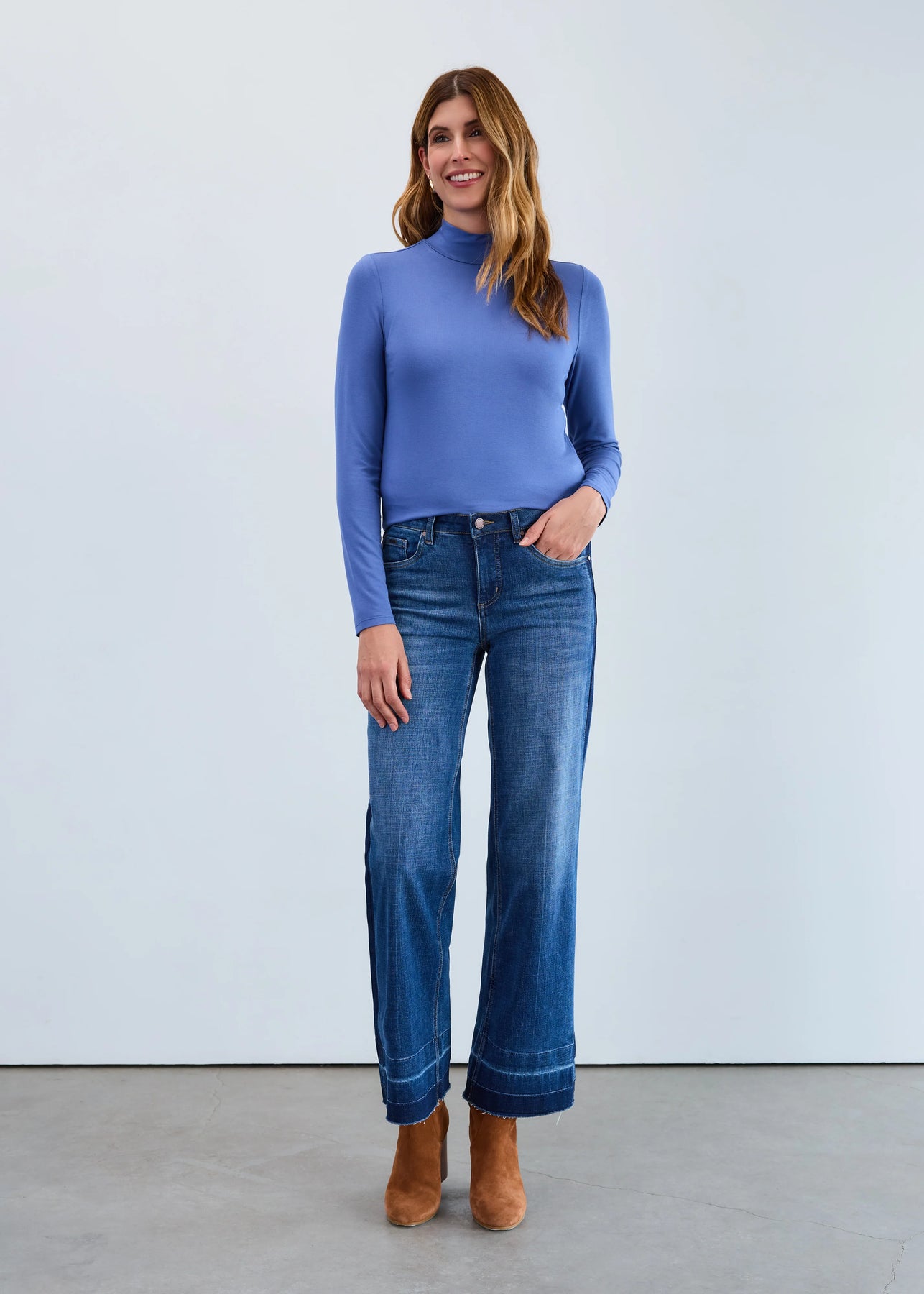 Simple, soft, and effortlessly chic, the Long-Sleeve Mock Neck Top in Blueberry is a layering essential you’ll reach for again and again. The cozy mock neck keeps you warm, while the sleek, relaxed fit makes it easy to pair with jeans, skirts, or layered under jackets and cardigans.