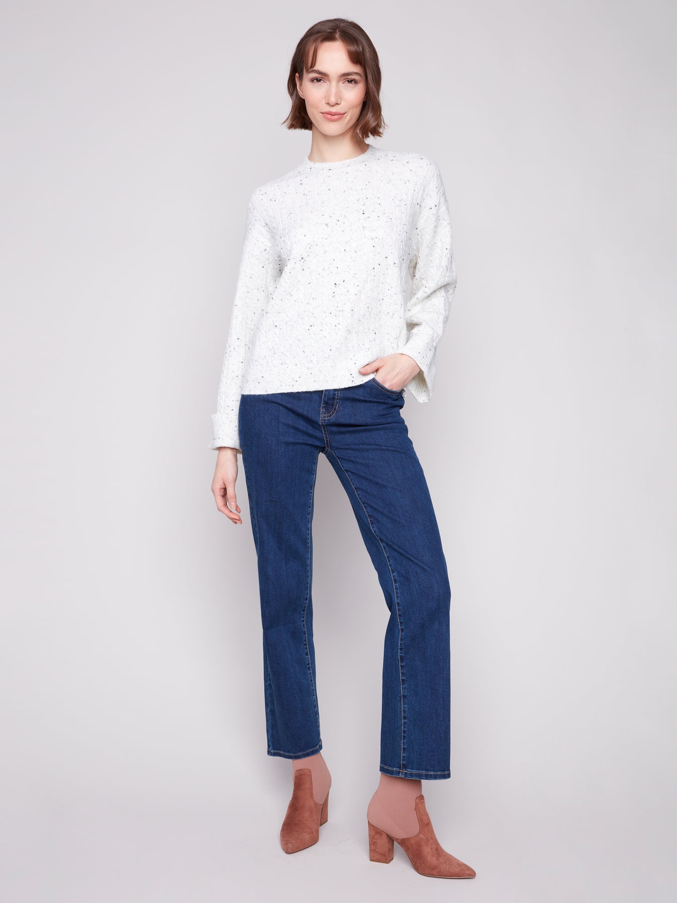 Wrap yourself in cozy charm with this Long Sleeves Crew Neck Sweater, featuring wide cuffs for an extra touch of flair. In a delightful Biscuit, Cookie, and Cream palette, it’s perfect for playful layering or solo snuggles. Soft, stylish, and whimsically comfortable—your new go-to for days that call for both warmth and a sprinkle of sweetness.
