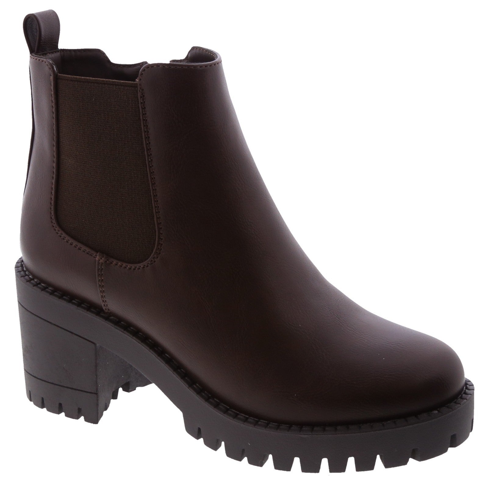 Add edge and versatility to your wardrobe with these women’s brown lug sole booties. Designed with a chunky heel and rugged sole, they provide both style and comfort for everyday wear. The rich brown color pairs effortlessly with fall and winter outfits, from cozy knits to denim and dresses.