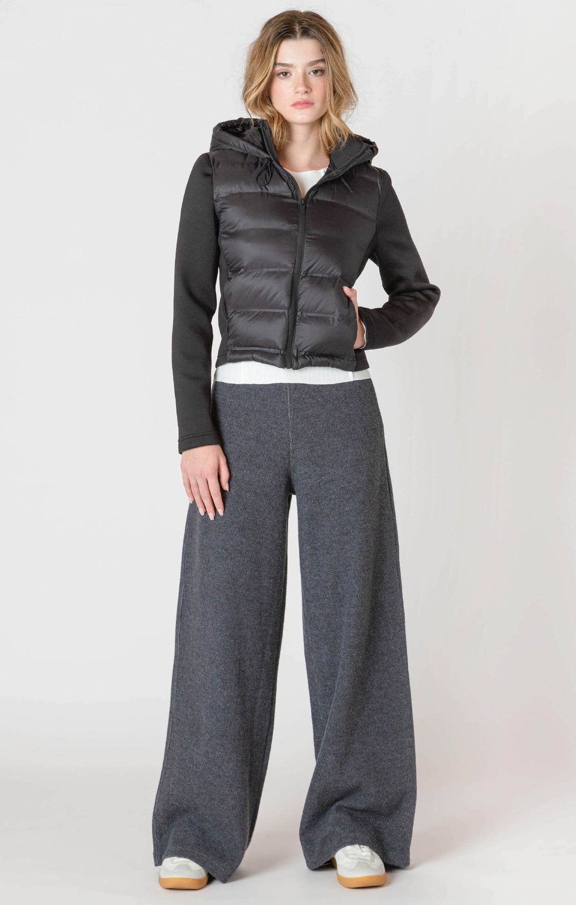 The kind of jacket you reach for on crisp mornings and never regret. This Mixed Fabric Puffer Hooded Jacket in classic black blends warmth with a modern edge — quilted panels for that cozy, insulated feel, paired with sleek mixed fabrics that keep the look fresh.