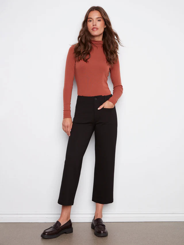 These wide-leg black ponte pants perfectly blend style and comfort. Featuring a flattering silhouette and practical patch pockets, they’re designed for all-day wear. The timeless black color effortlessly pairs with any top, adding an elegant touch to your fall wardrobe essentials.