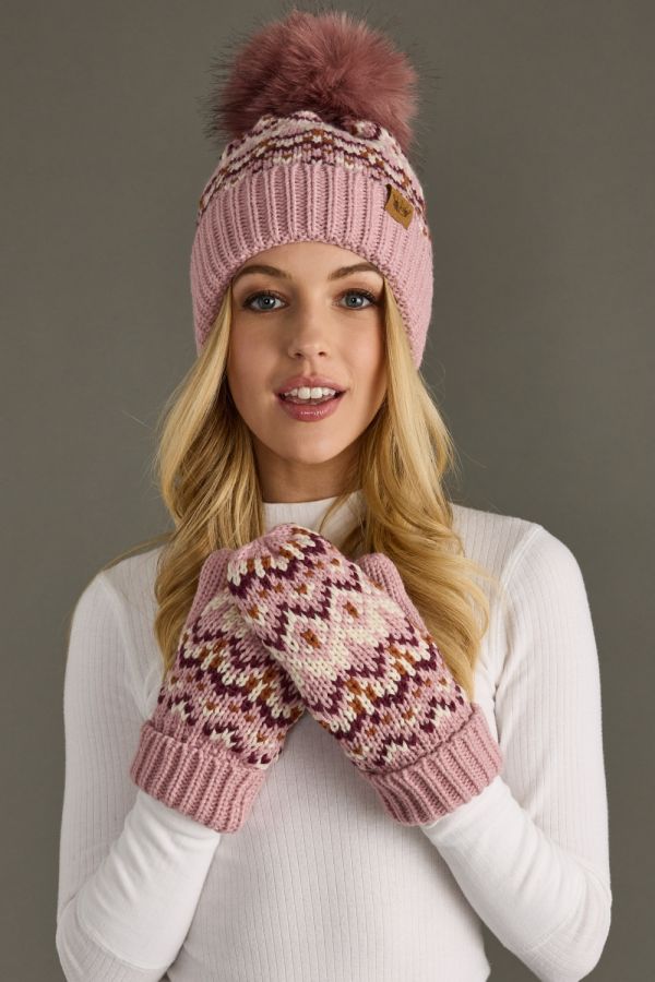 These mittens bring a pop of color to chilly days. Featuring a playful mix of pink, ivory, and rust in a classic knit pattern, they’re lined with soft fleece to keep your hands extra cozy. Lightweight yet warm, they’re the kind of mittens you’ll grab for everything from morning coffee runs to snowy evening strolls.
