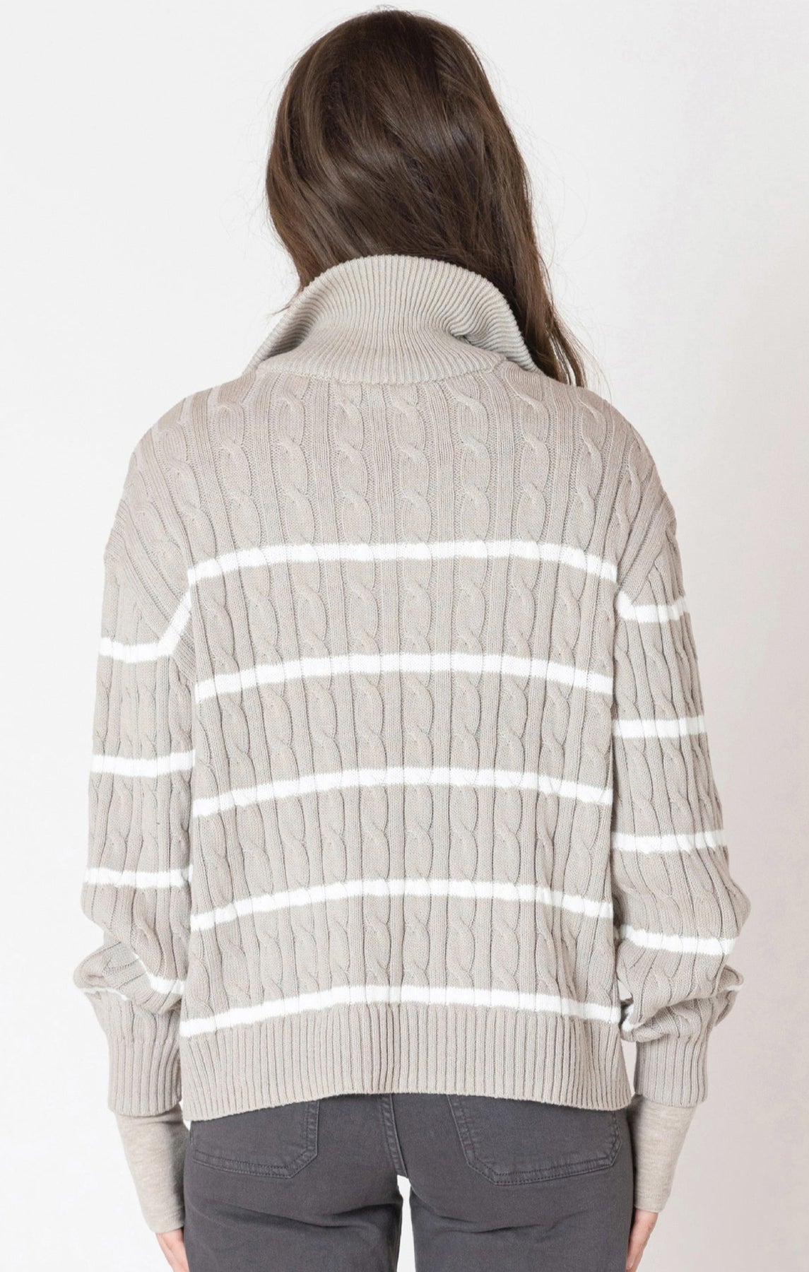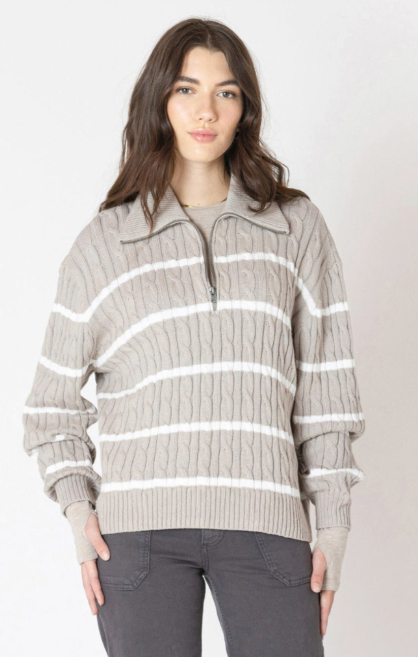 Stay warm without sacrificing style in this plus size half-zip cable knit sweater. With its soft light taupe and white tones, this cozy knit features a classic cable texture and a playful half-zip neckline for an easy, throw-on-and-go feel. Designed with a roomy fit for layering, it’s the perfect plus size casual sweater for chilly days when you want comfort with a touch of charm.