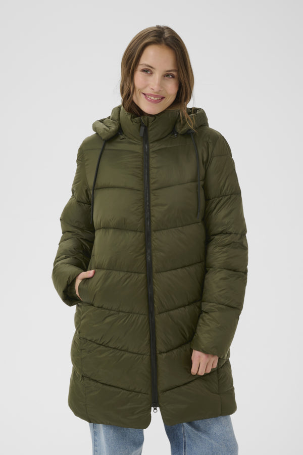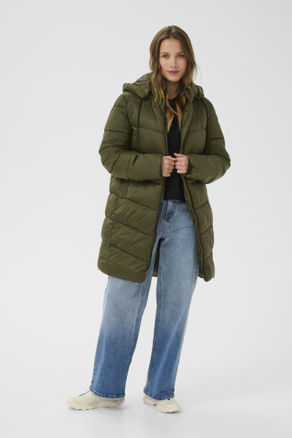 This long puffer shows off a sleek matte finish with eye-catching quilting in both horizontal and diagonal patterns. The zip-up front seals in warmth, while side pockets keep your must-haves close. A drawstring hood gives extra protection on windy days, and the above-knee length keeps things cozy without the bulk. Designed with a relaxed, regular fit, it’s the perfect mix of style and comfort for cold-weather adventures.