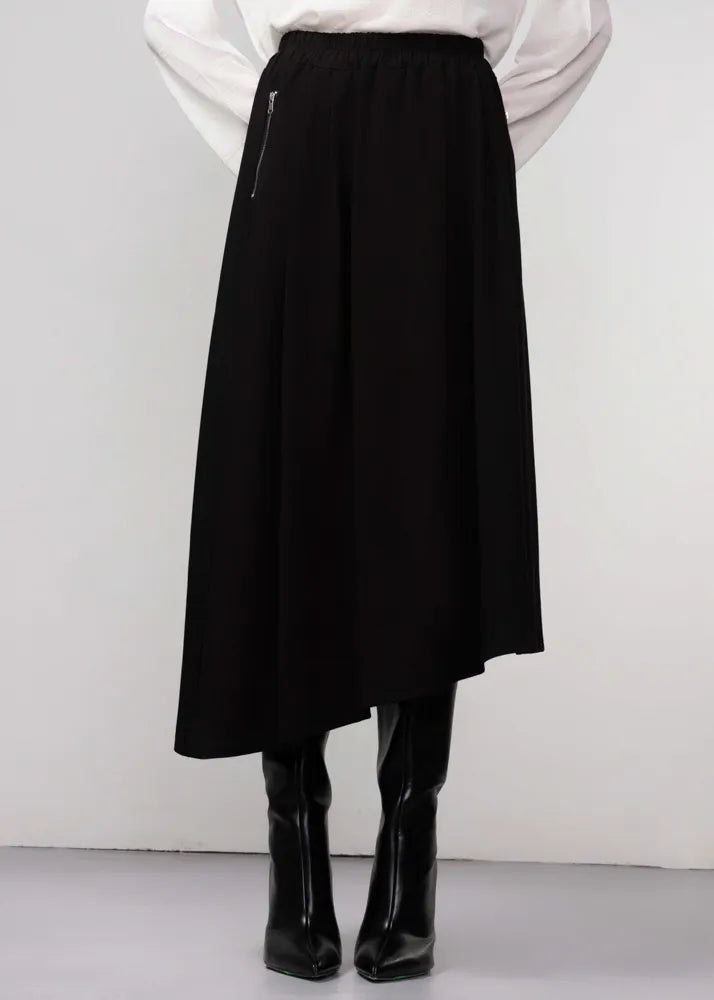 Slip into effortless style with this charming elastic waist skirt that moves with you all day long. The relaxed fit keeps you comfortable whether you're running errands or catching up with friends, while the convenient zipper pockets mean your essentials stay secure and within reach. Classic black pairs with everything in your wardrobe, making this a versatile go-to piece that works from casual weekends to dressed-up occasions. No fussy zippers or complicated closures—just pull it on and go!