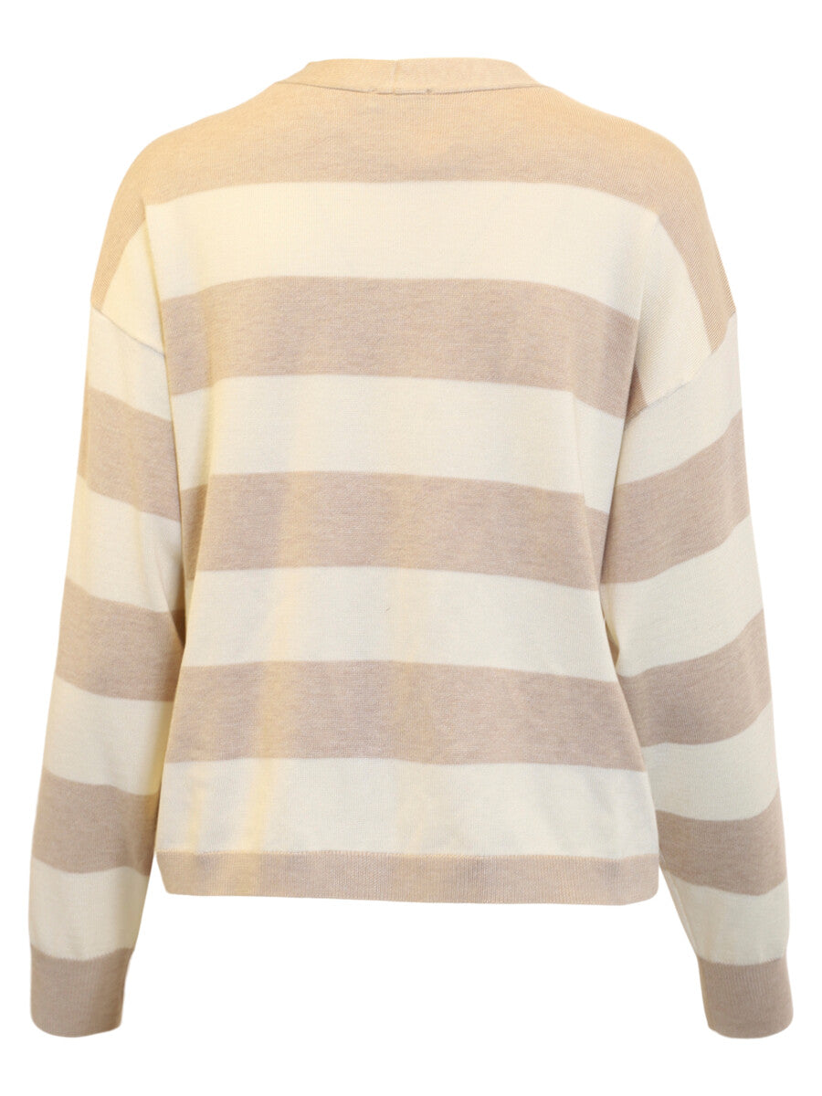 Long Sleeve Striped Cardigan - Tan/Cream