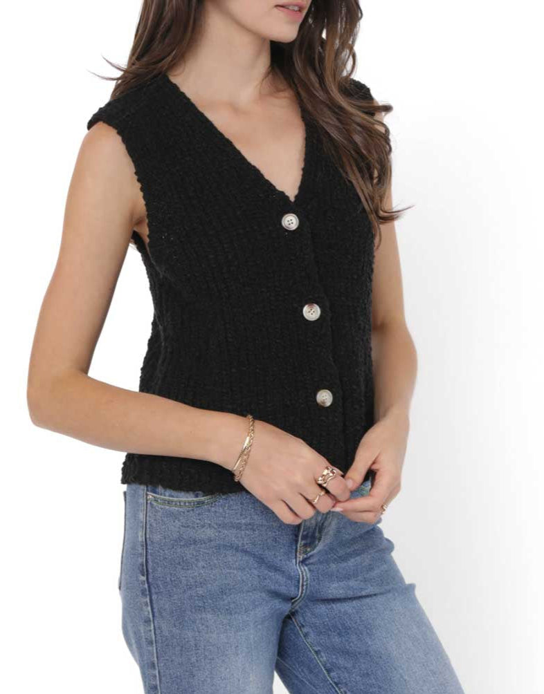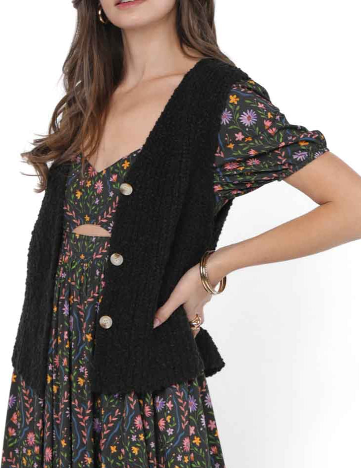 Easy, versatile, and just the right amount of chic — the Arlo Cardigan Vest is your go-to for effortless layering. Made from soft, textured fabric and detailed with charming tortoise buttons, it pairs beautifully with everything from a silky slip dress to cut-off shorts and sandals.