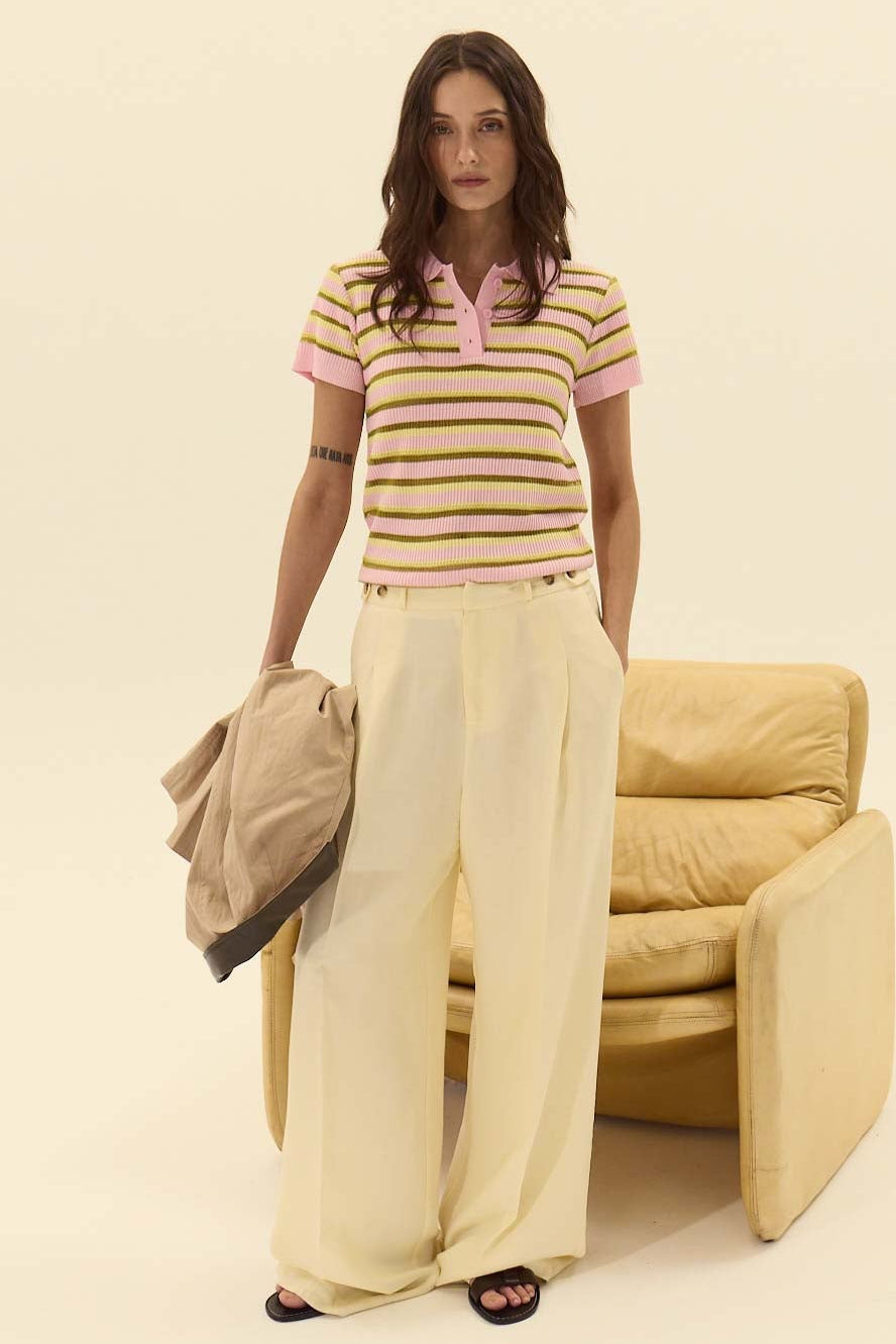 Turn everyday outfits into something cheerful with the Levanzo Knit Polo Top. The bold multicolored stripes and soft, ribbed knit texture add personality and movement without fuss.