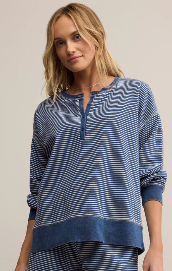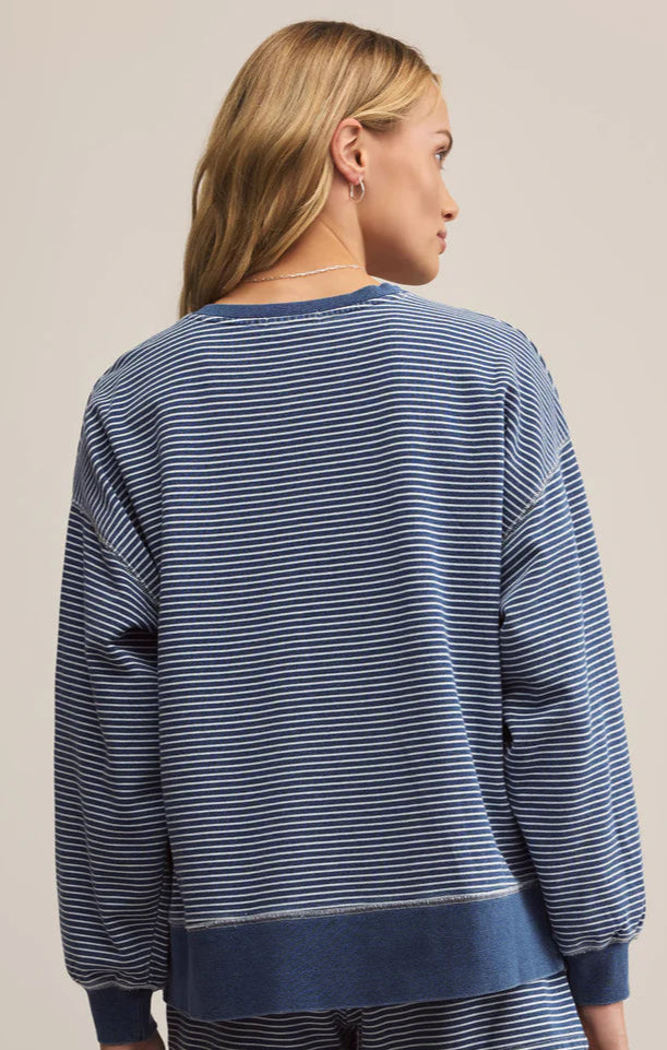 Apollo Knit Denim Striped Sweatshirt - Vintage Indigo