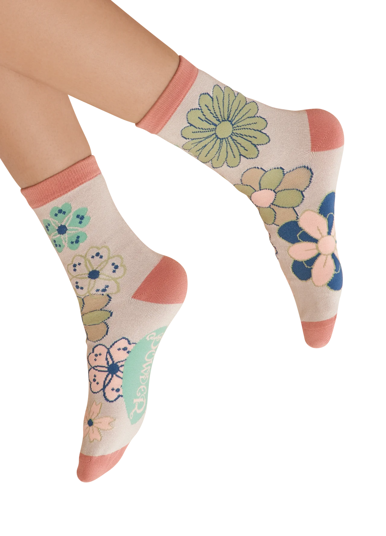 Made with bamboo, our glorious ladies ankle socks are a cut above the rest when it comes to plush, cushy comfort. This Kaleidoscope design is for all the 70s lovers out there - we see your eye for geometry and a pastel palette!