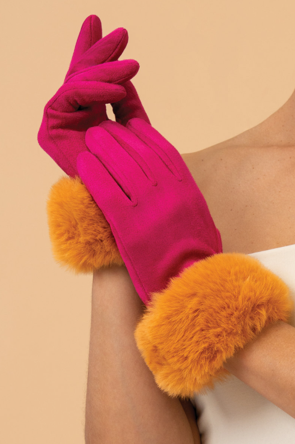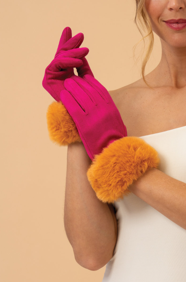 Stay warm and stylish with our Bettina gloves! Wrap up with the perfect combination of magenta and mustard for an ultra-chic, country-inspired look. Complementary packaging makes these a great gift, or a perfect treat to yourself! Experience luxury with these luxurious gloves and be the envy of everyone! One size