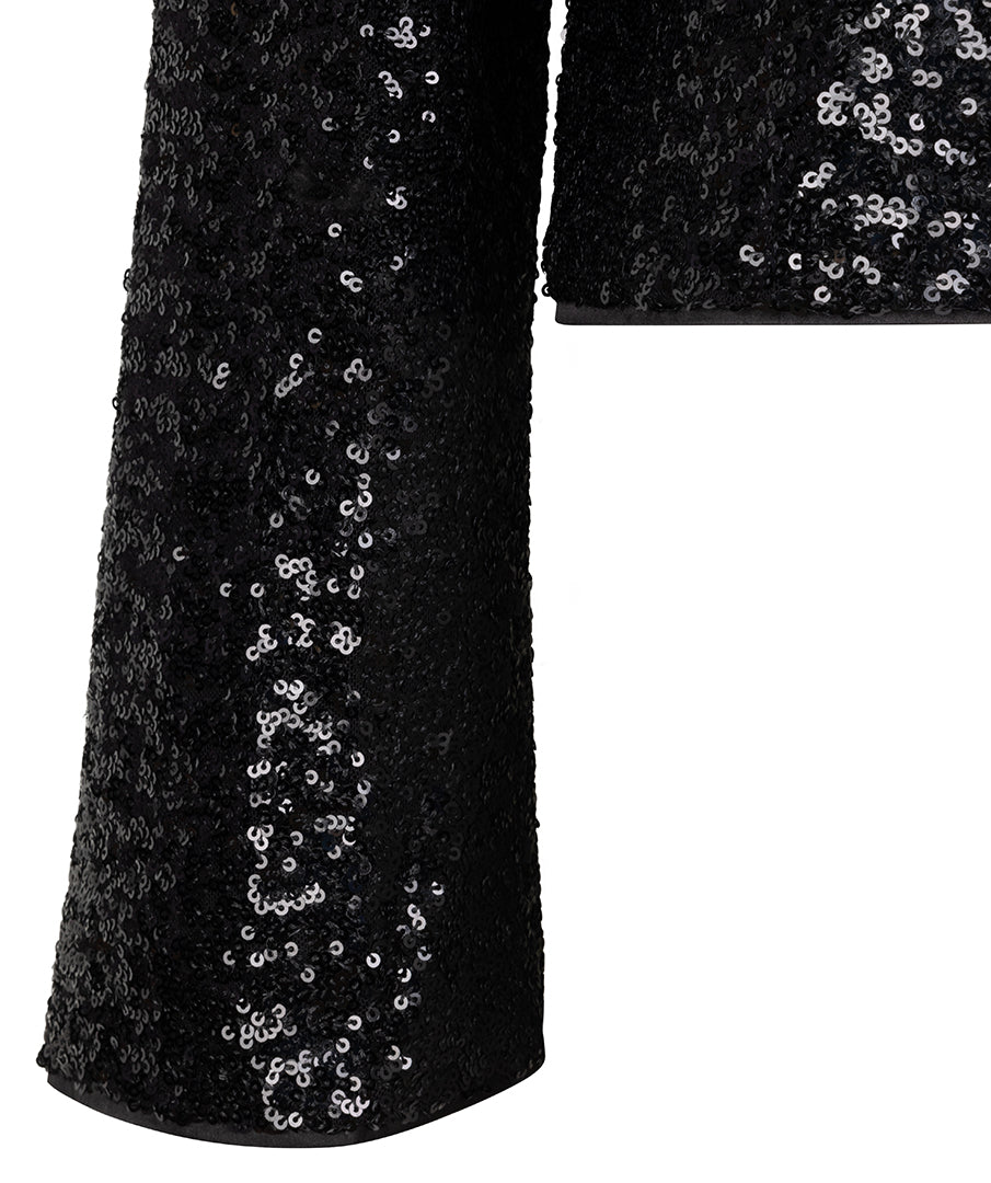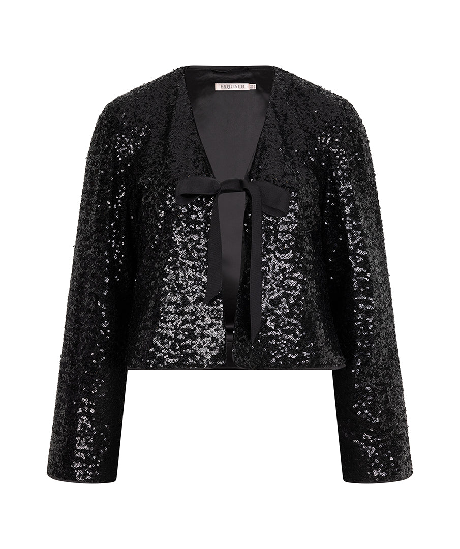 Step into the spotlight with this Cropped Bow Sequin Blazer in classic black. Shimmering sequins catch every glance, while the playful bow detail adds a boutique-ready twist that makes this piece unforgettable. Perfect for pairing with high-waist pants, skirts, or layering over dresses, it’s a statement blazer that brings fun, sparkle, and chic energy to your wardrobe.