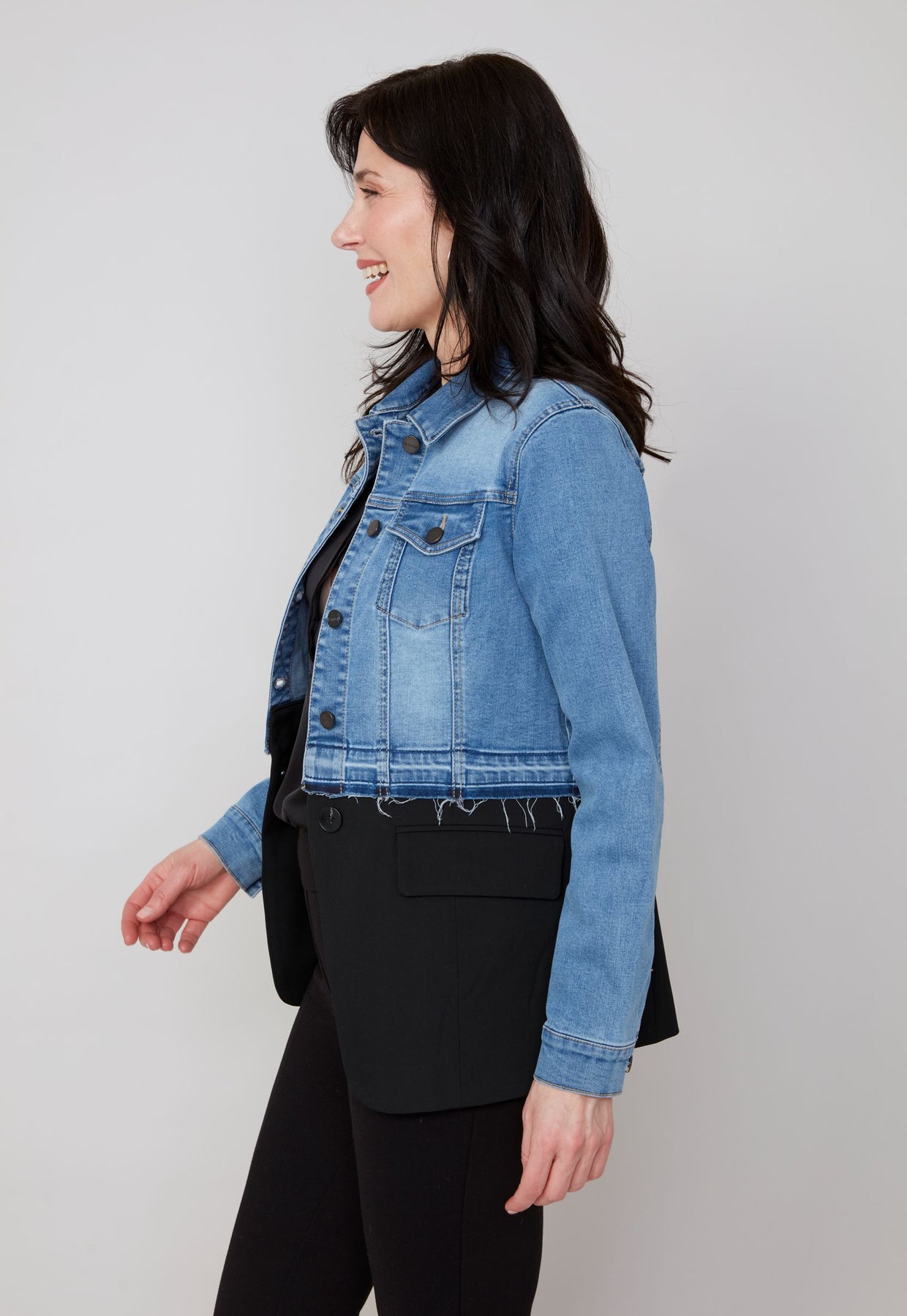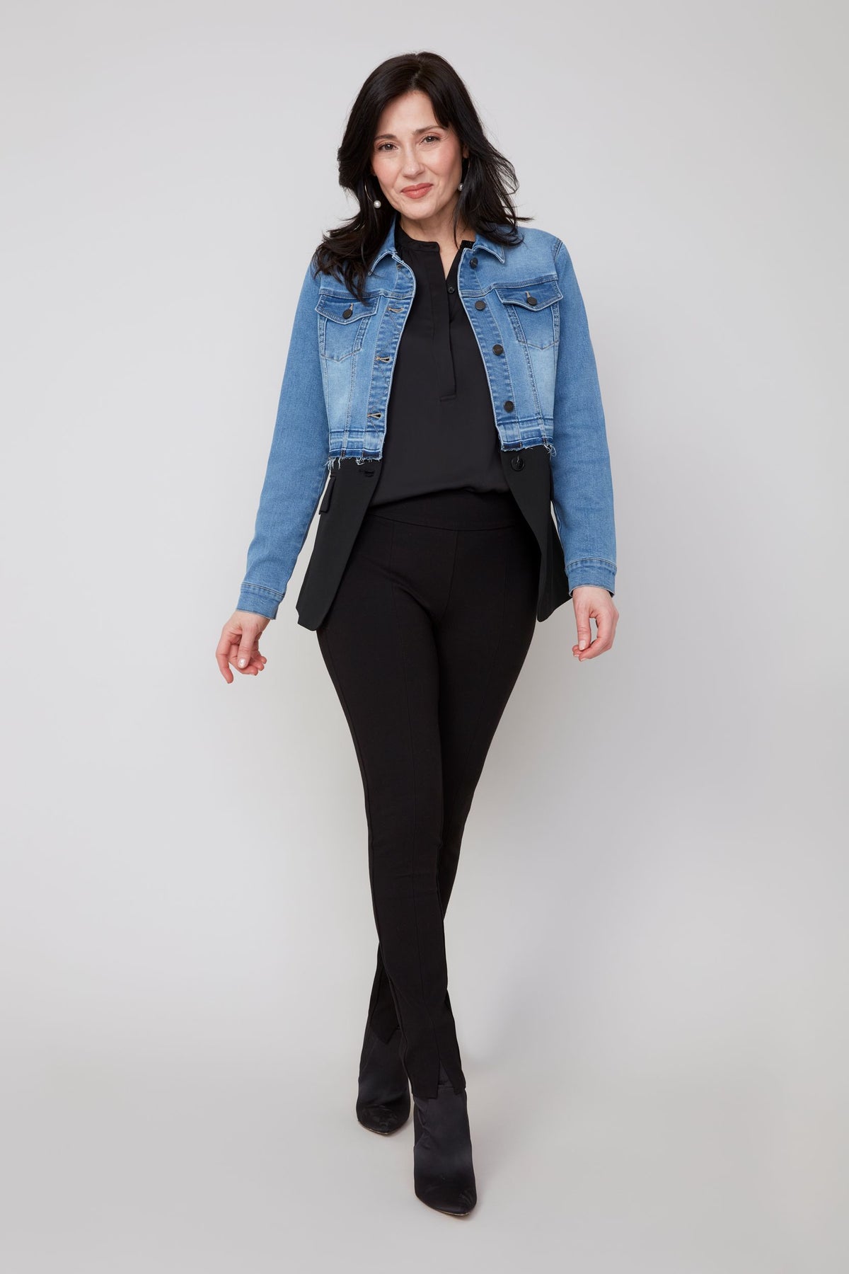 This Denim Mix Jacket in Blue Wash and Black is all about cool contrast and effortless style. Classic blue denim meets sleek black accents for a look that’s unique and eye-catching. Lightweight yet durable, it’s perfect for layering over dresses, tops, or casual weekend outfits. Whether you’re strolling through town or meeting friends for coffee, this jacket adds a standout edge to everything you wear. talking!