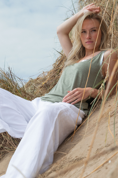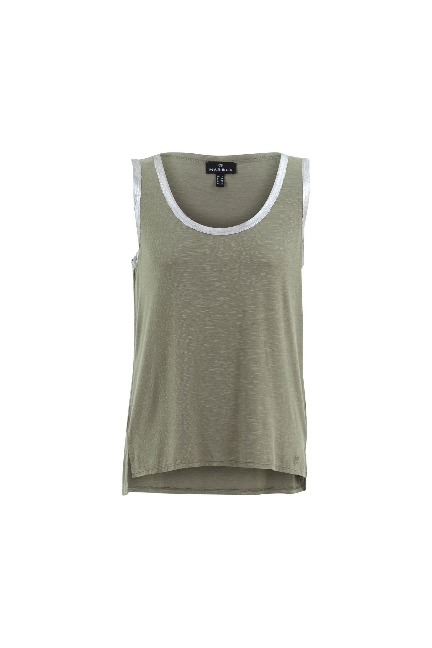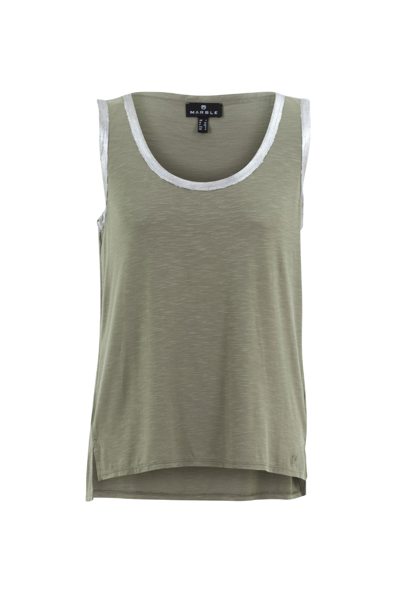 Add a subtle shimmer to your everyday style with this Green Tank featuring Silver Trim. Designed with a flattering fit and soft, lightweight fabric, this tank is perfect for layering or wearing on its own. The delicate silver trim adds just the right touch of detail, making it easy to dress up or keep it casual.