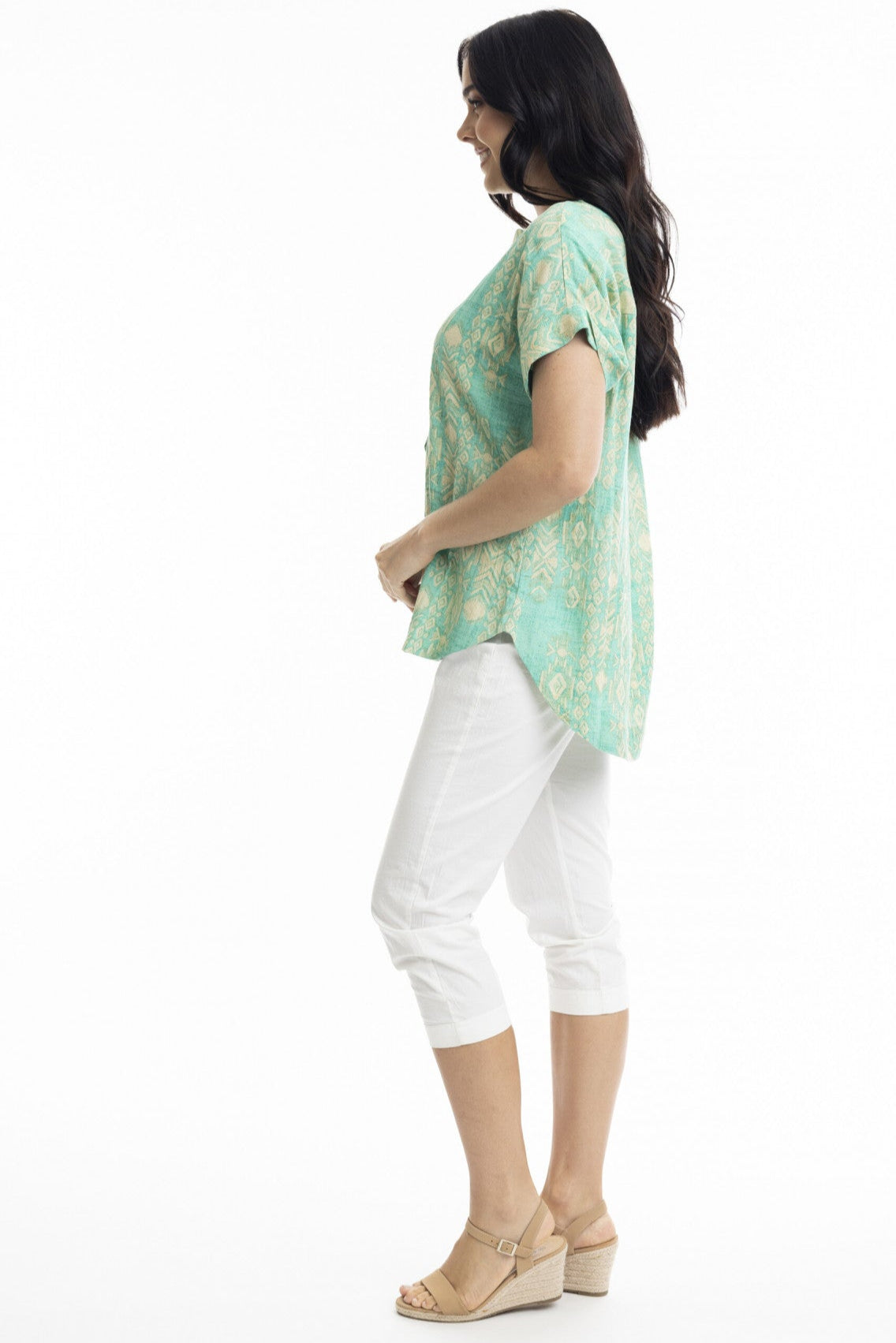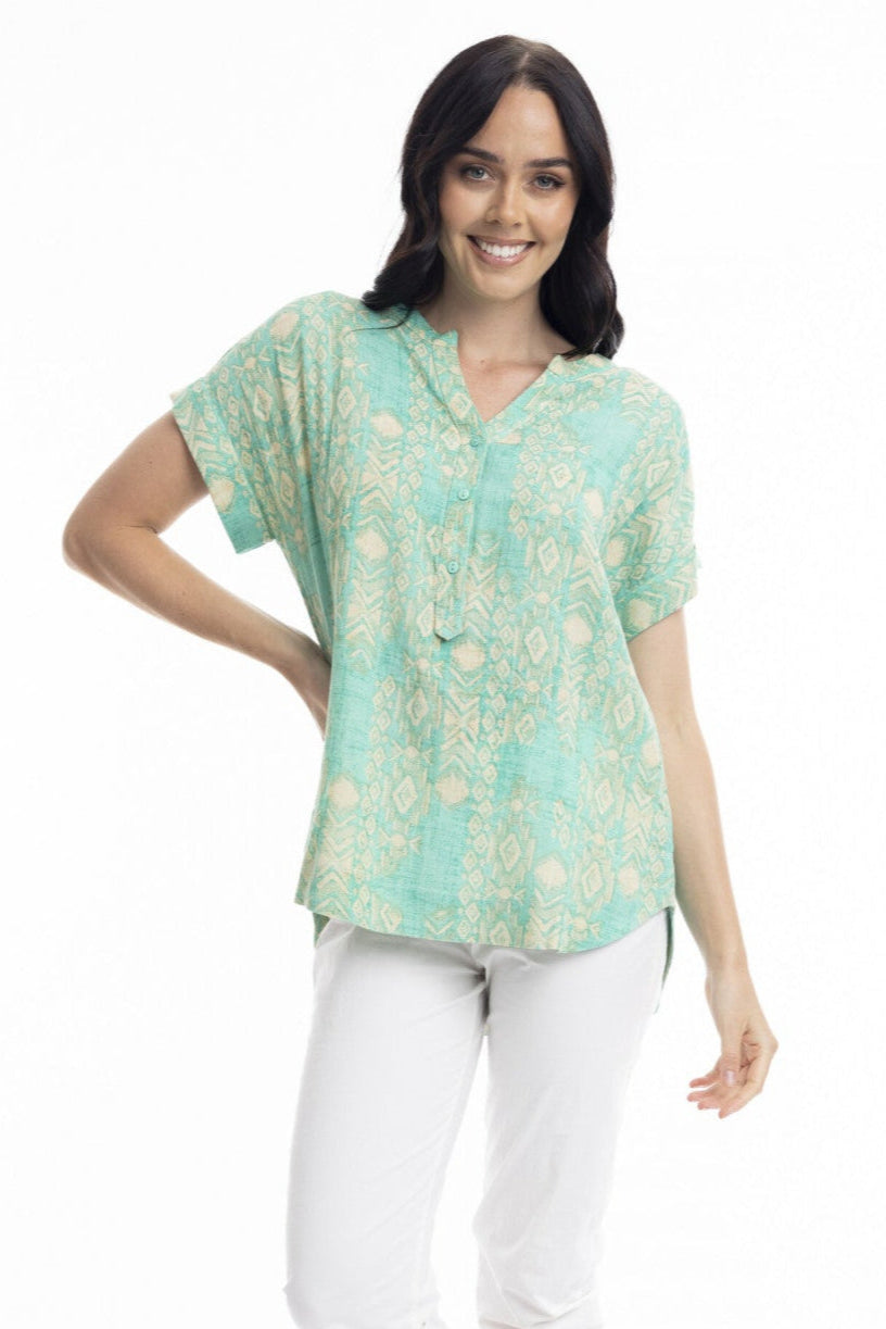 Brighten up your summer collection with our Hanalei top. Featuring a stylish mandarin collar and short cuffed sleeves, its relaxed shape ensures all-day comfort and effortless charm, making it the perfect addition to your everyday wardrobe.