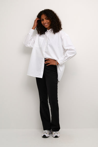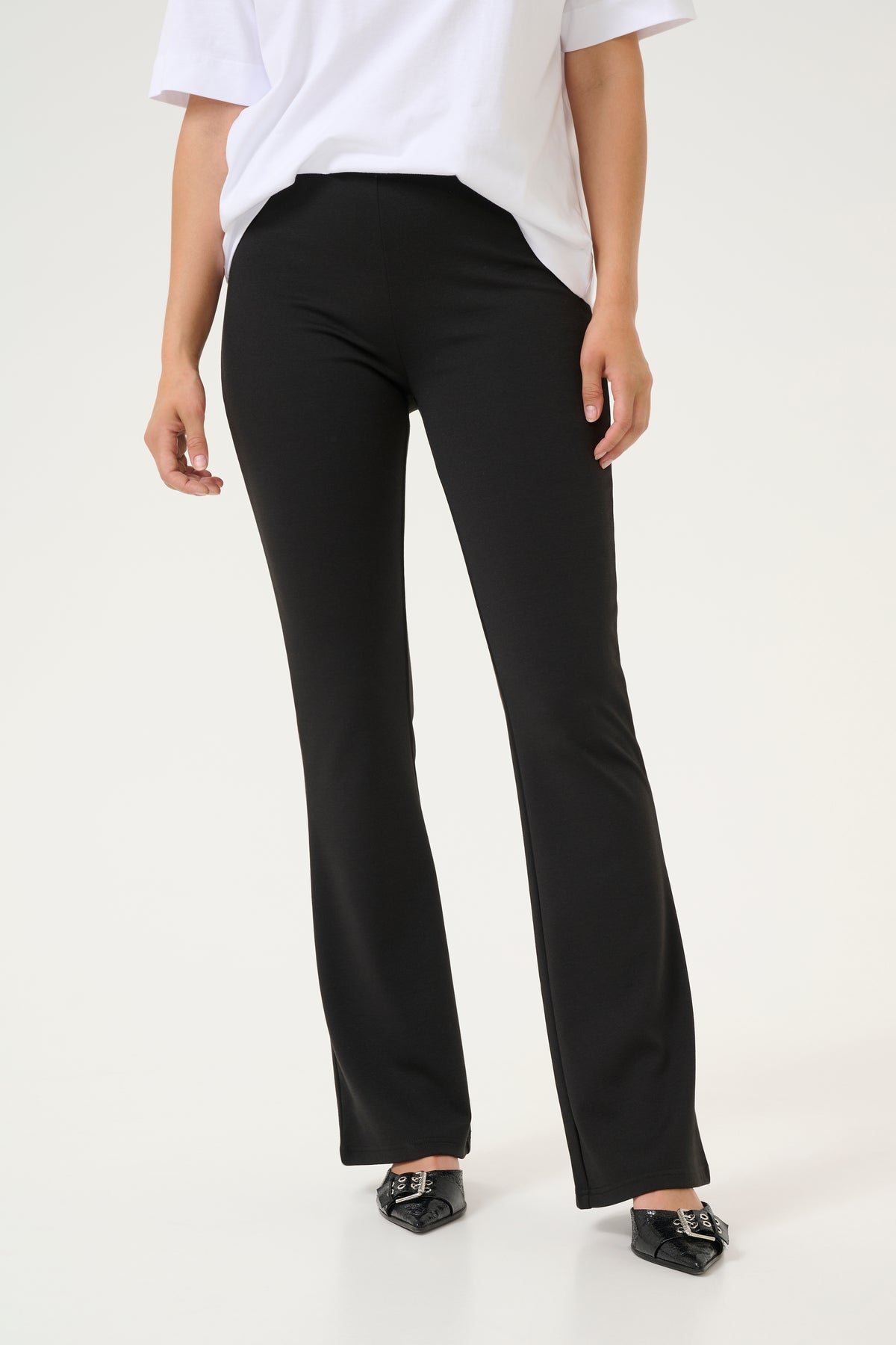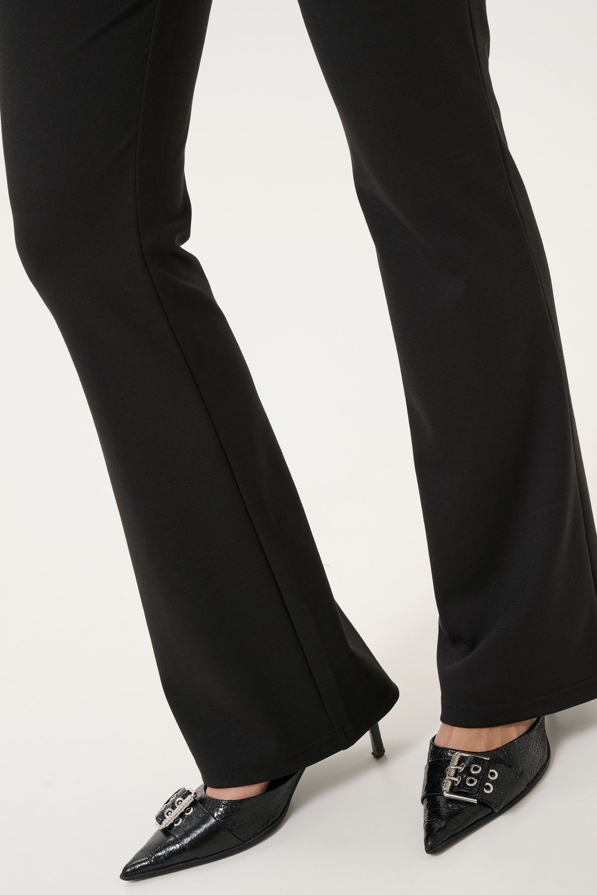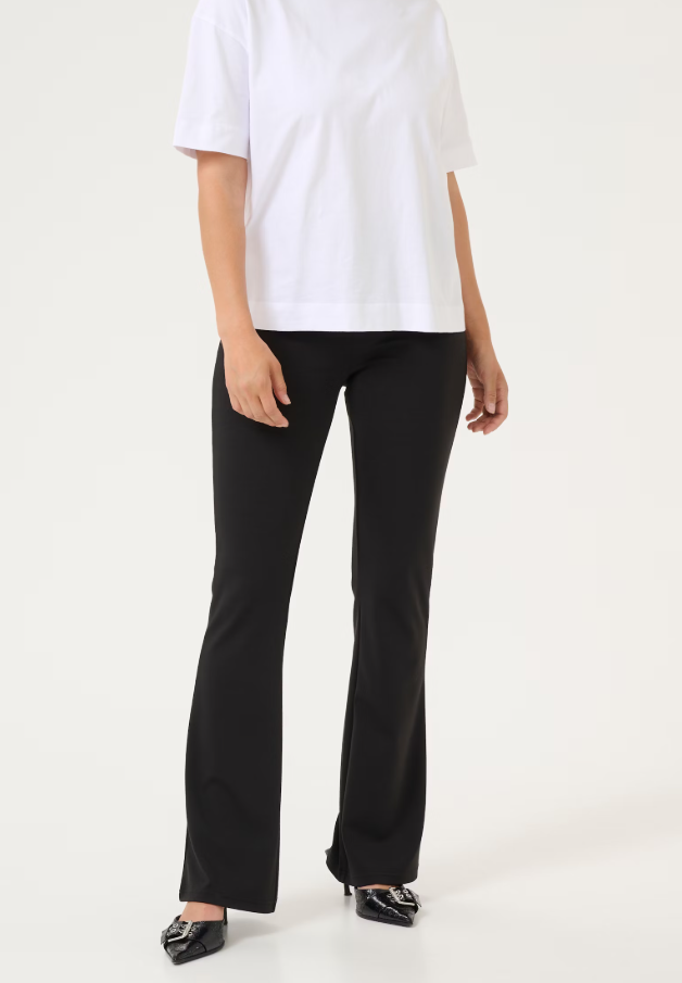 The Jenny Flared Leggings have the sleek look of dress pants with the ease of leggings. Designed in a deep black hue, these flared-leg bottoms offer a polished, elongated silhouette that pairs effortlessly with blouses, blazers, or cozy knits. Whether for work or a night out, these leggings bring style and comfort together flawlessly.